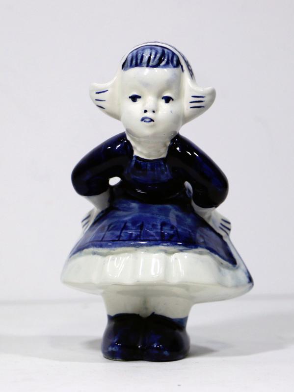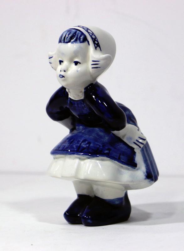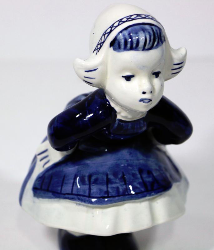 Blue Delft Holland Porcelain Girl Figurine - Signed.