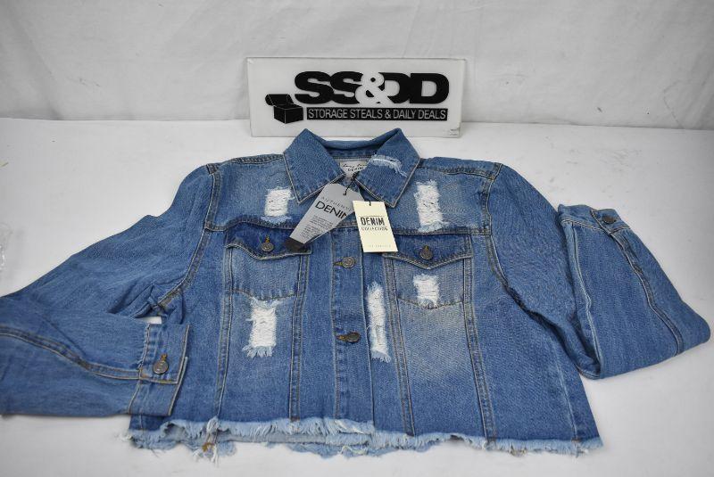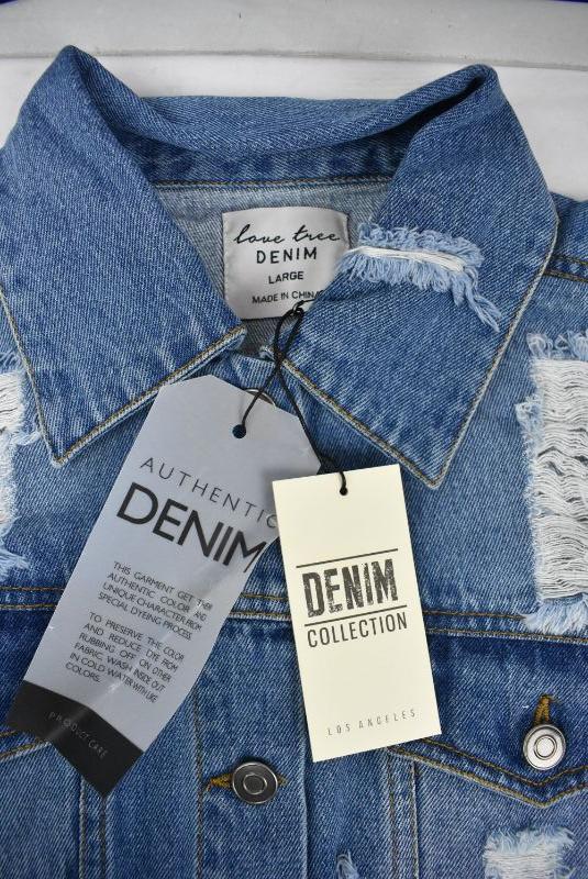 Blue Denim Jacket, Distressed, Size Large, by Love Tree Los Angeles - New