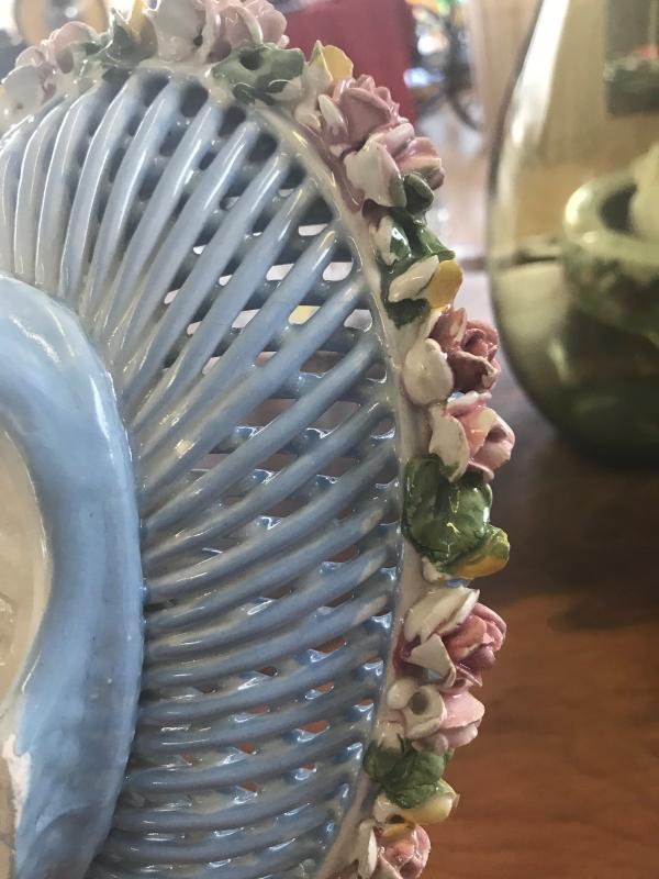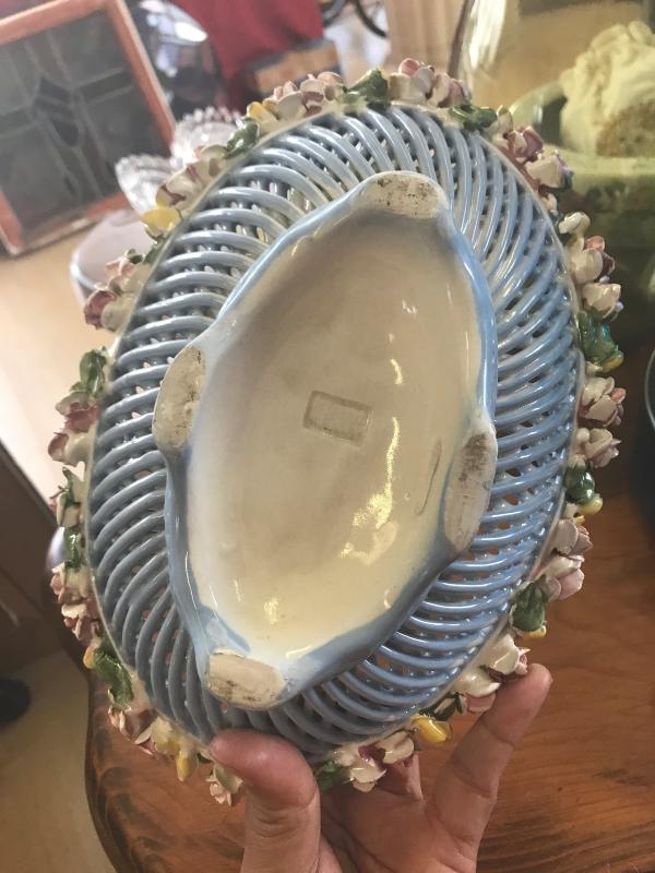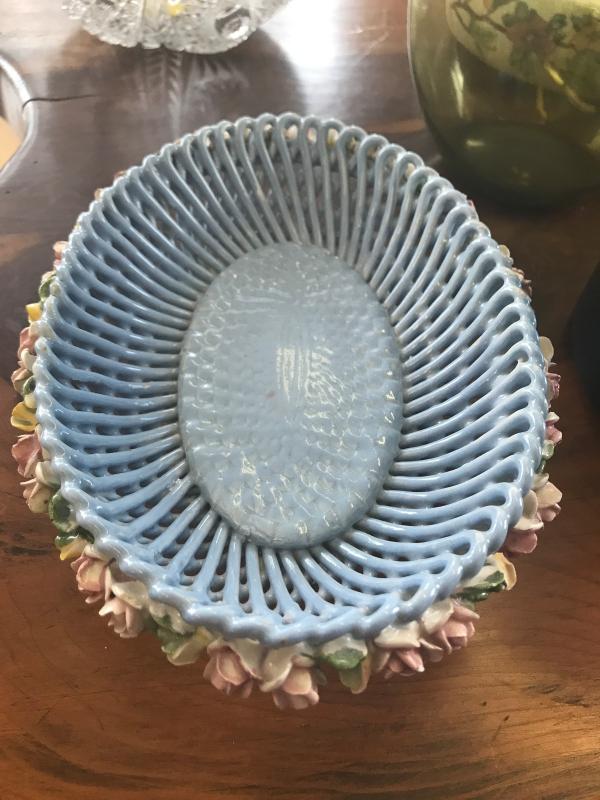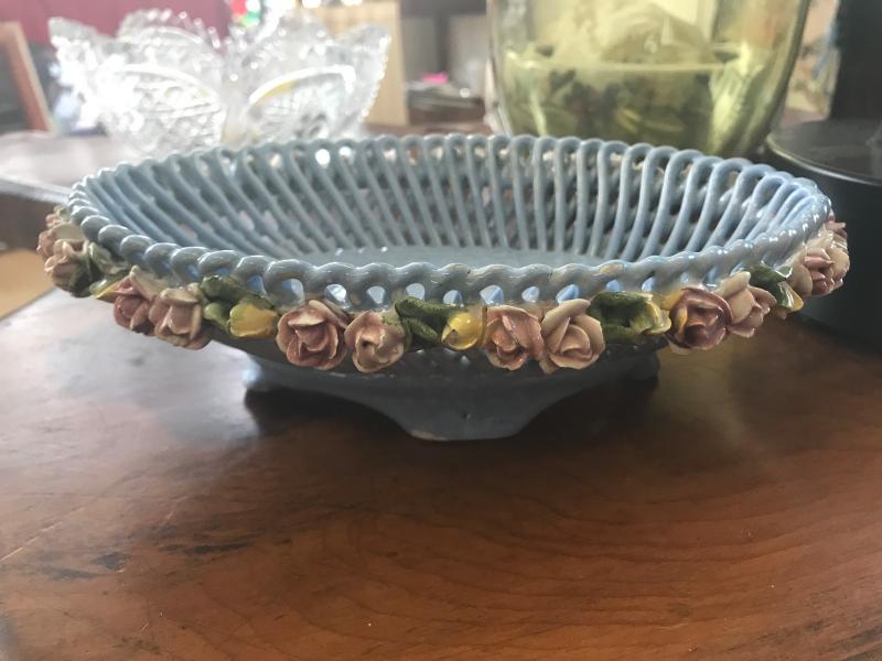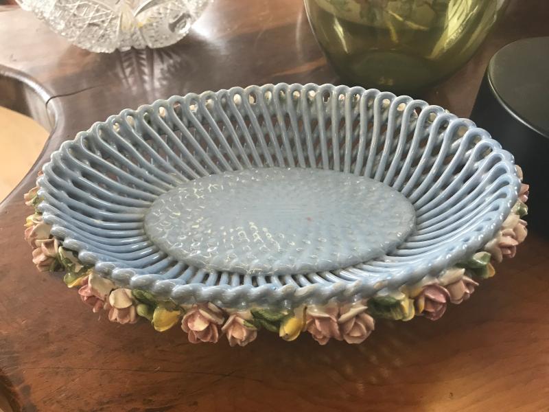 Blue Dish Lined with Roses (Item #744)