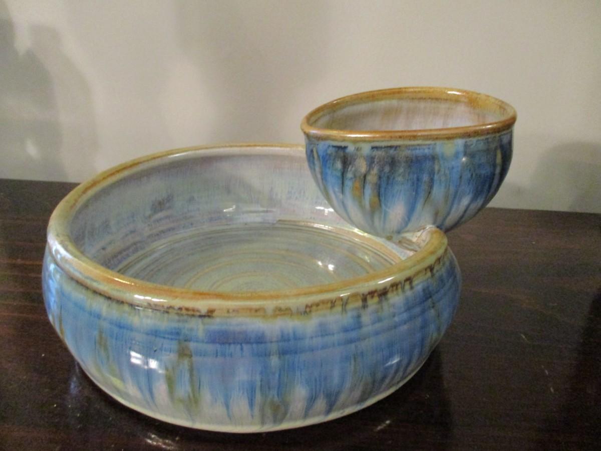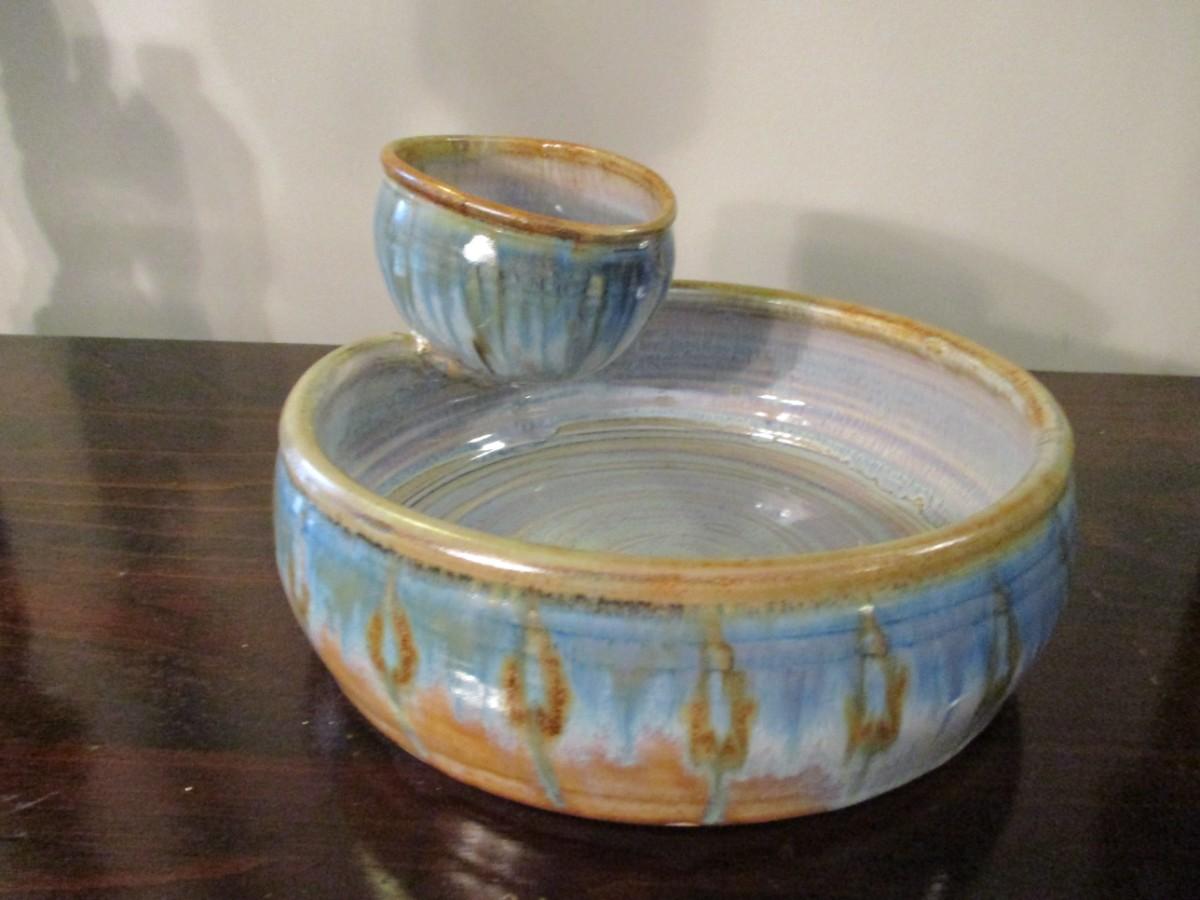 Blue Drip Glaze Studio Art Pottery Chips & Dip