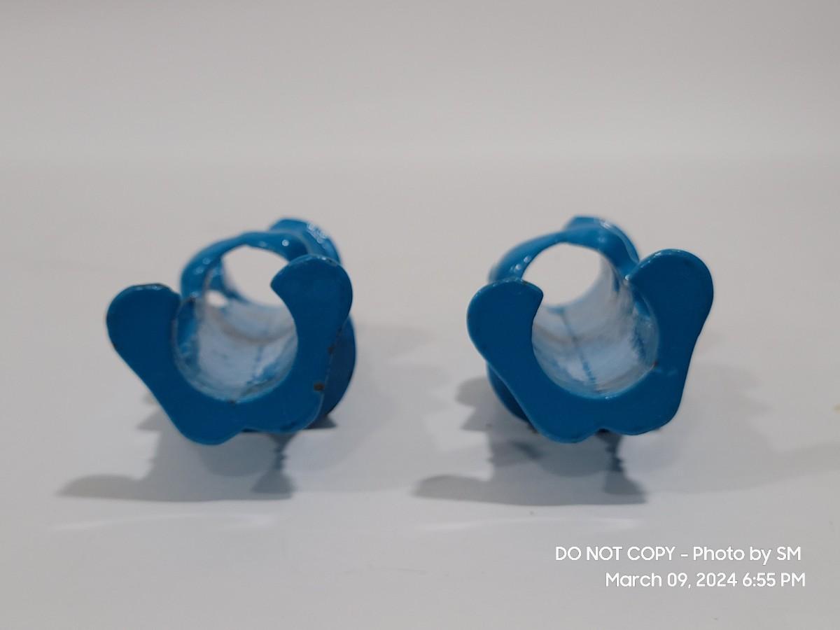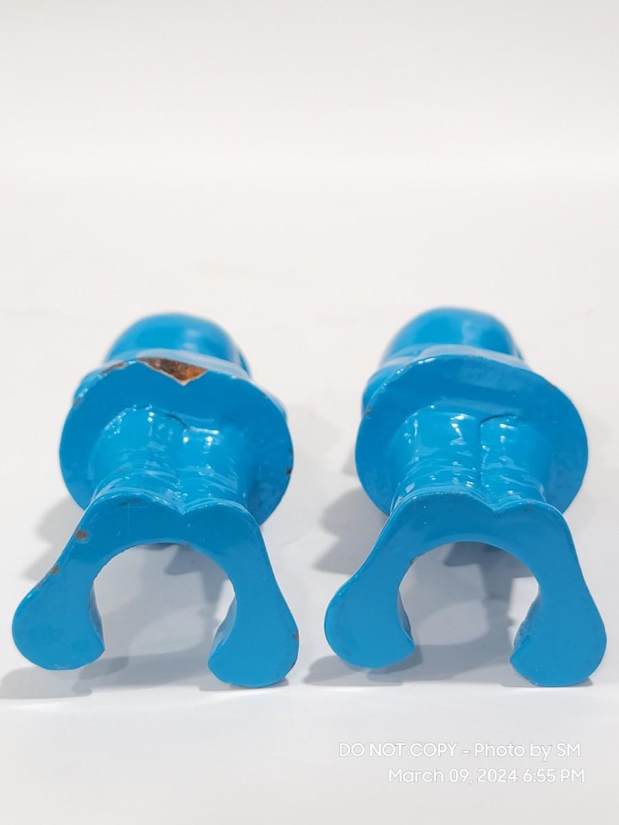 Not perfect has some paint chips or a little rust, but overall the cheerful blue enameled paint is fun. Slip a tapered candle in and impress your dinner guests.