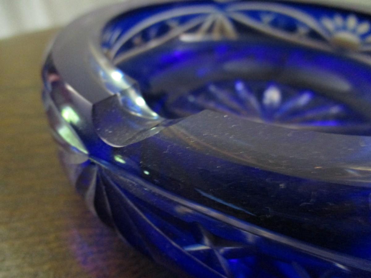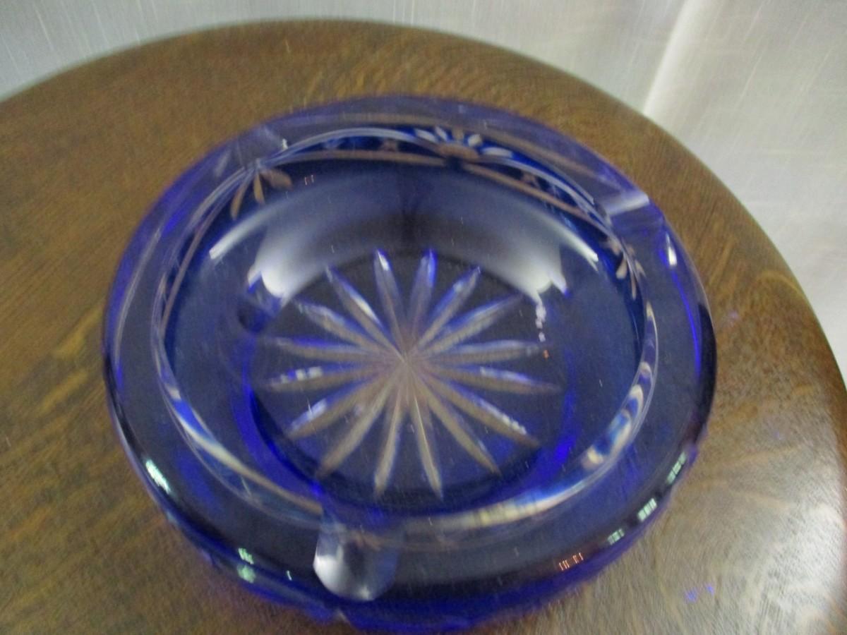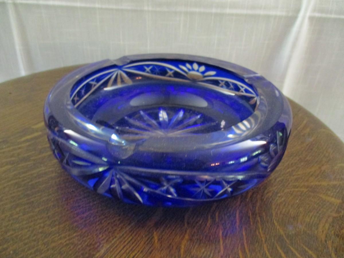 Blue Etched Glass Ashtray