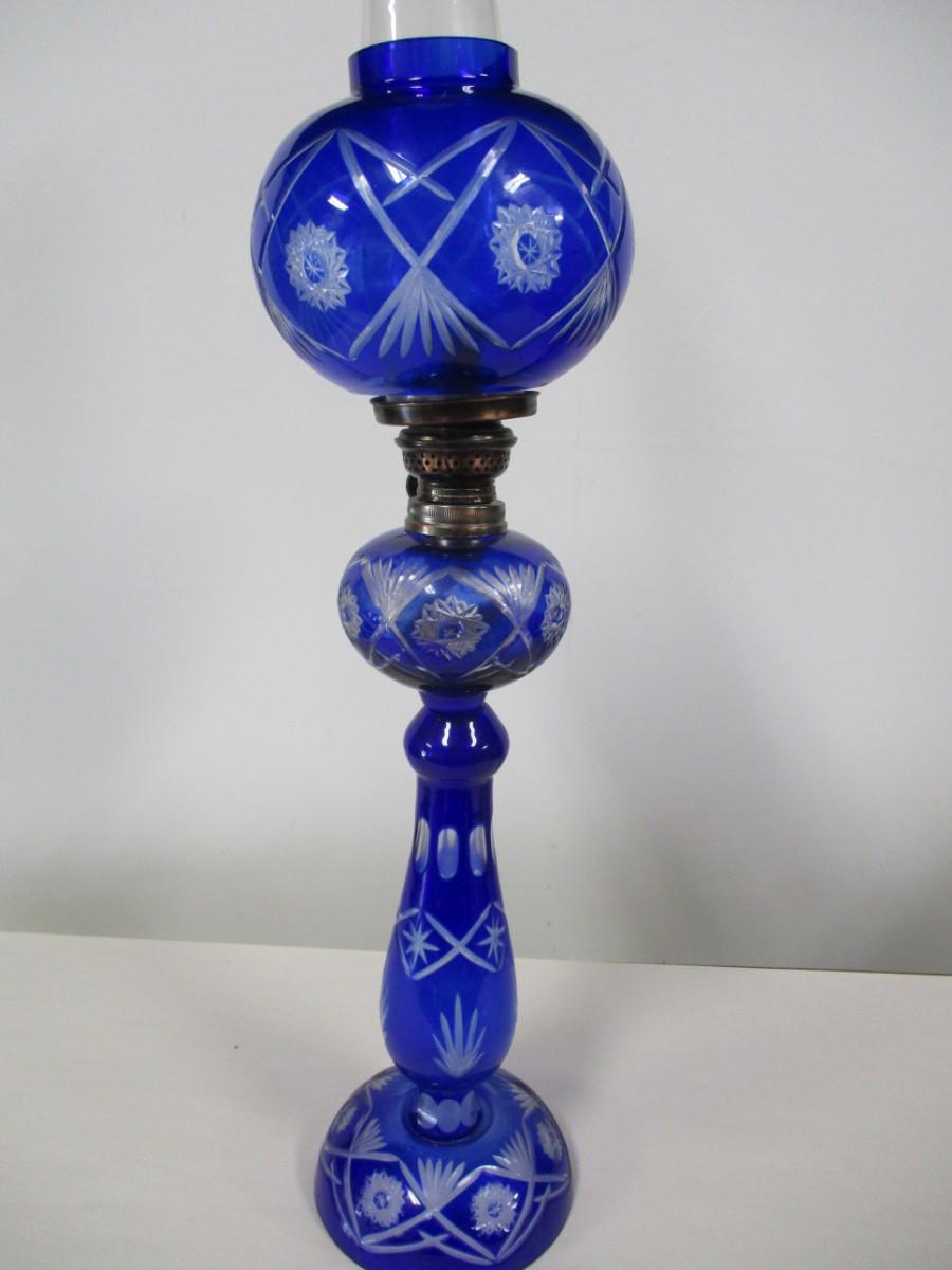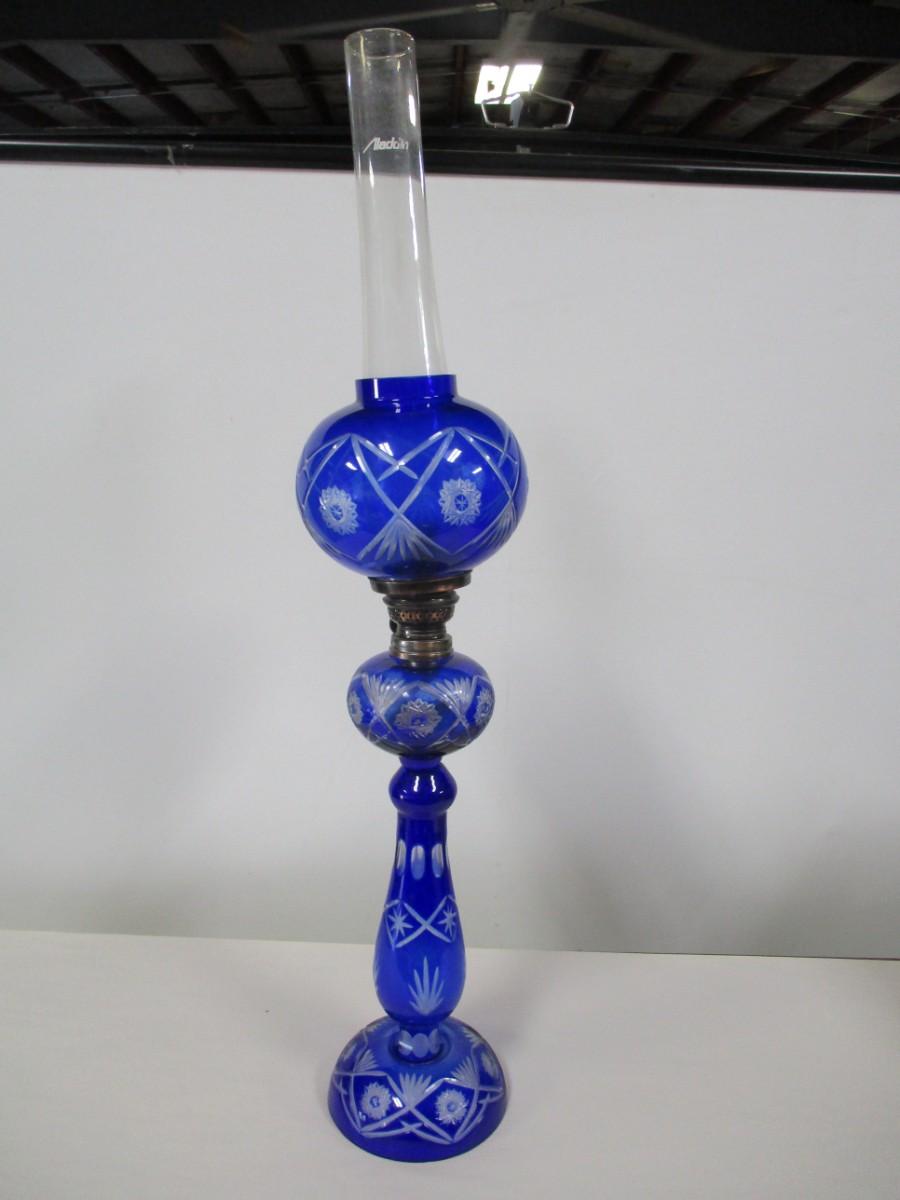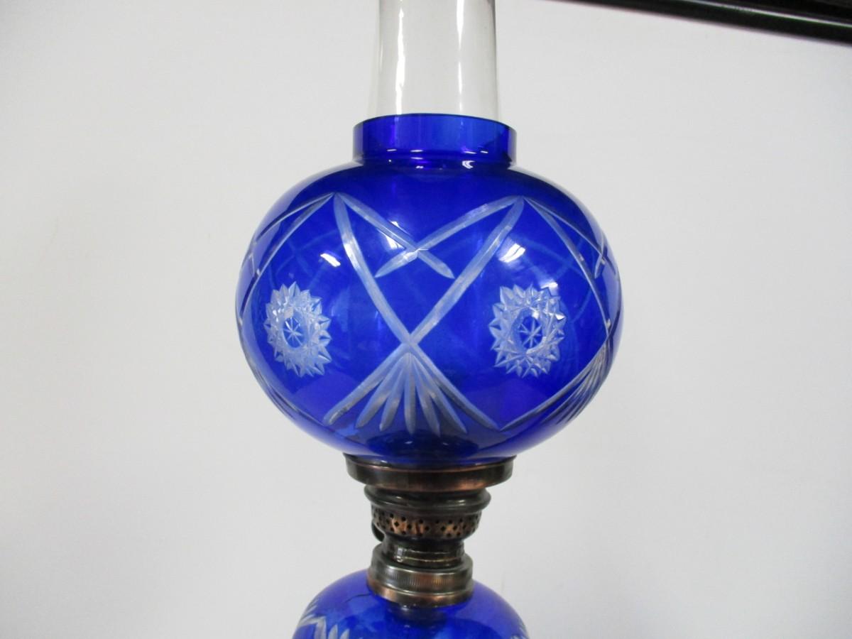 Blue Etched Hurricane Lamp