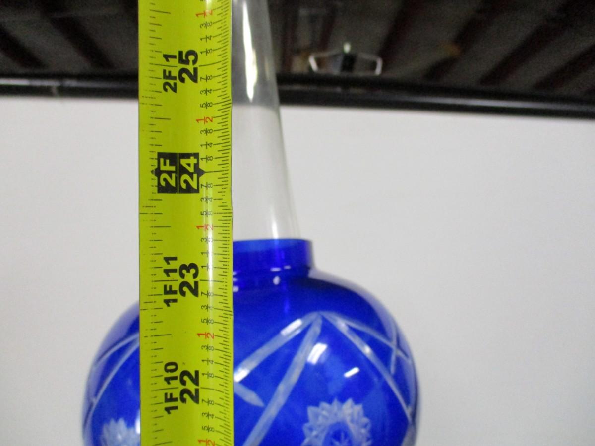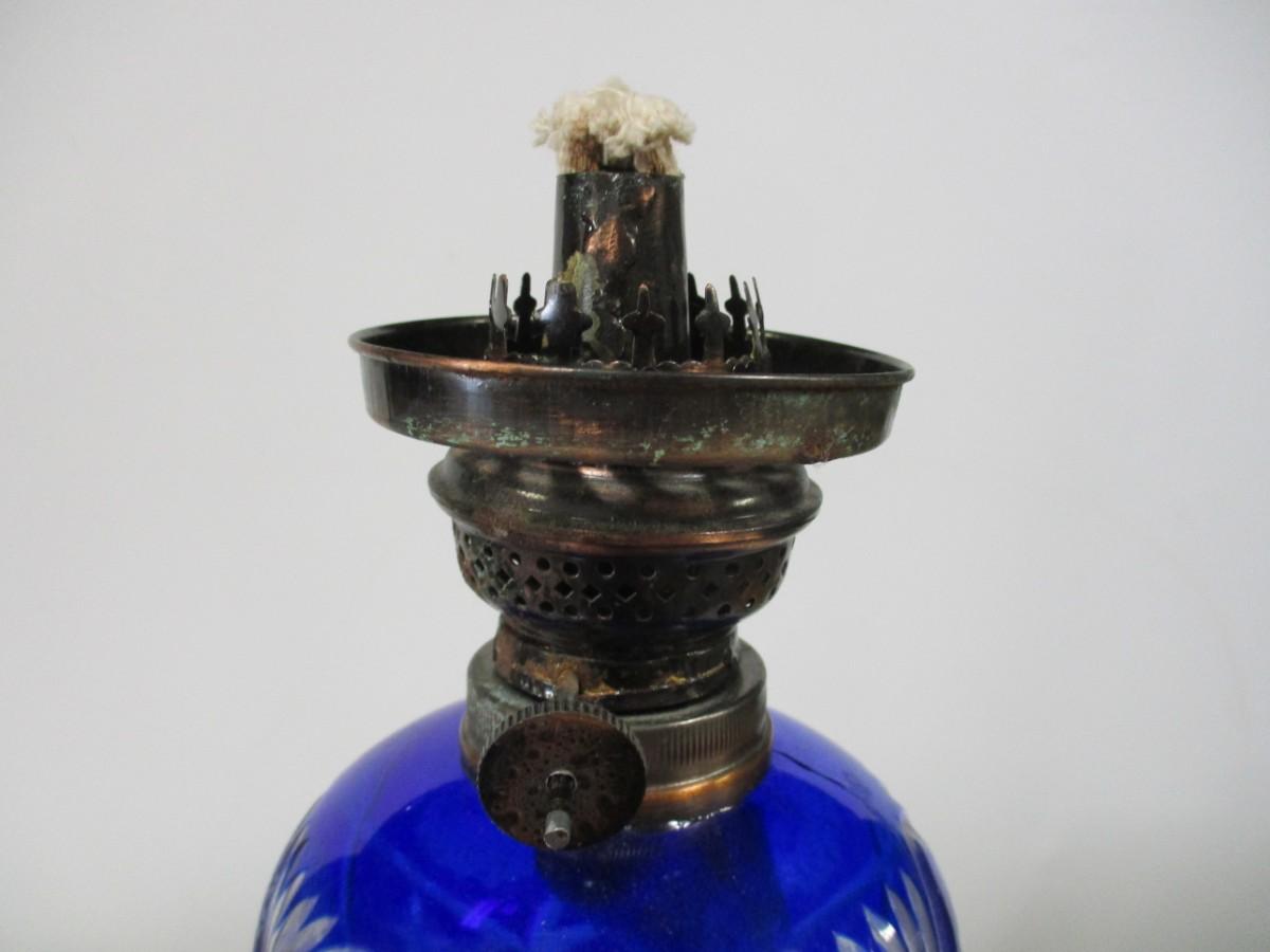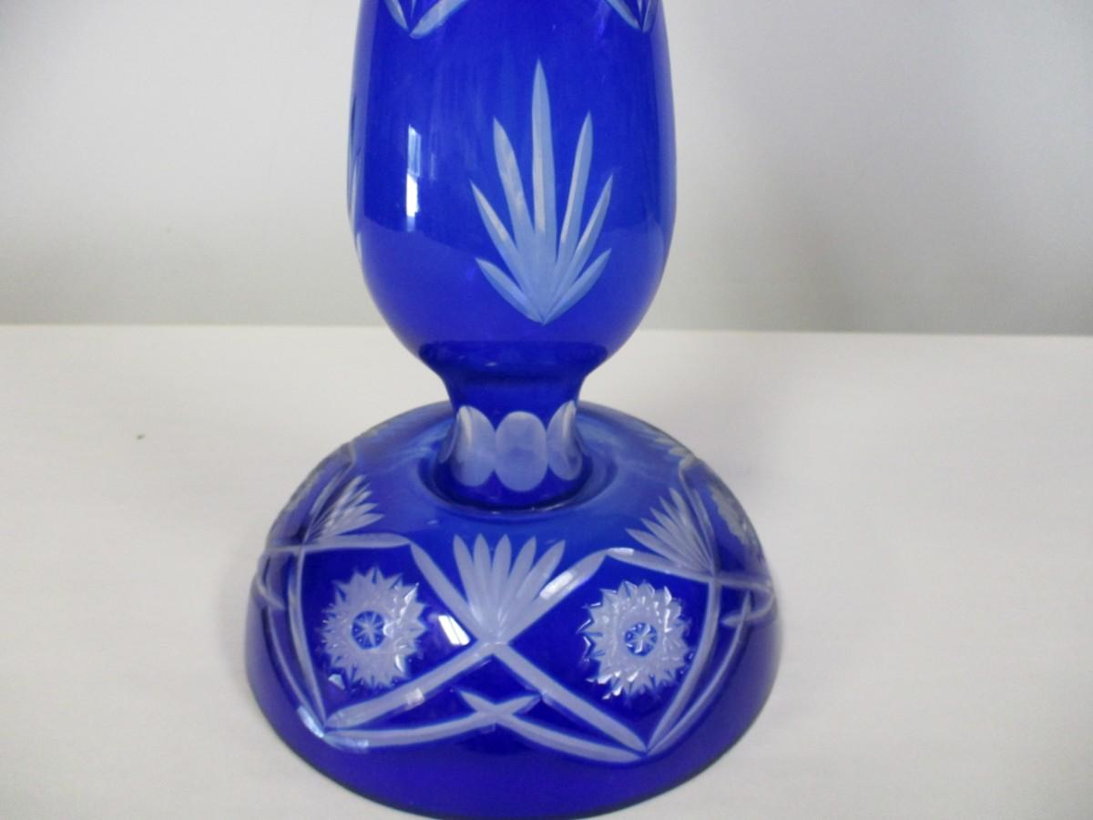 Blue Etched Hurricane Lamp