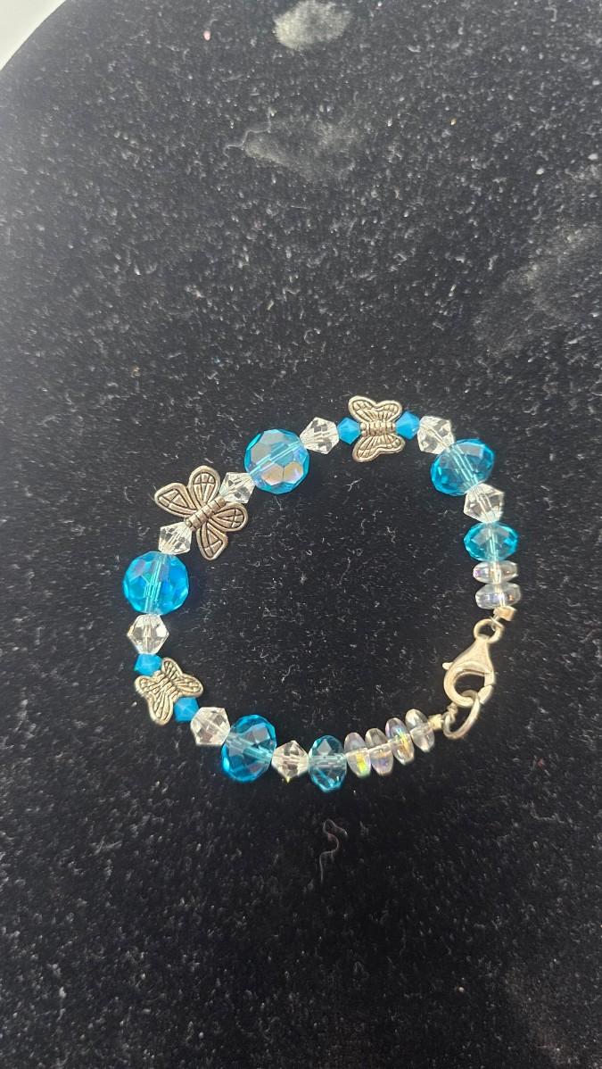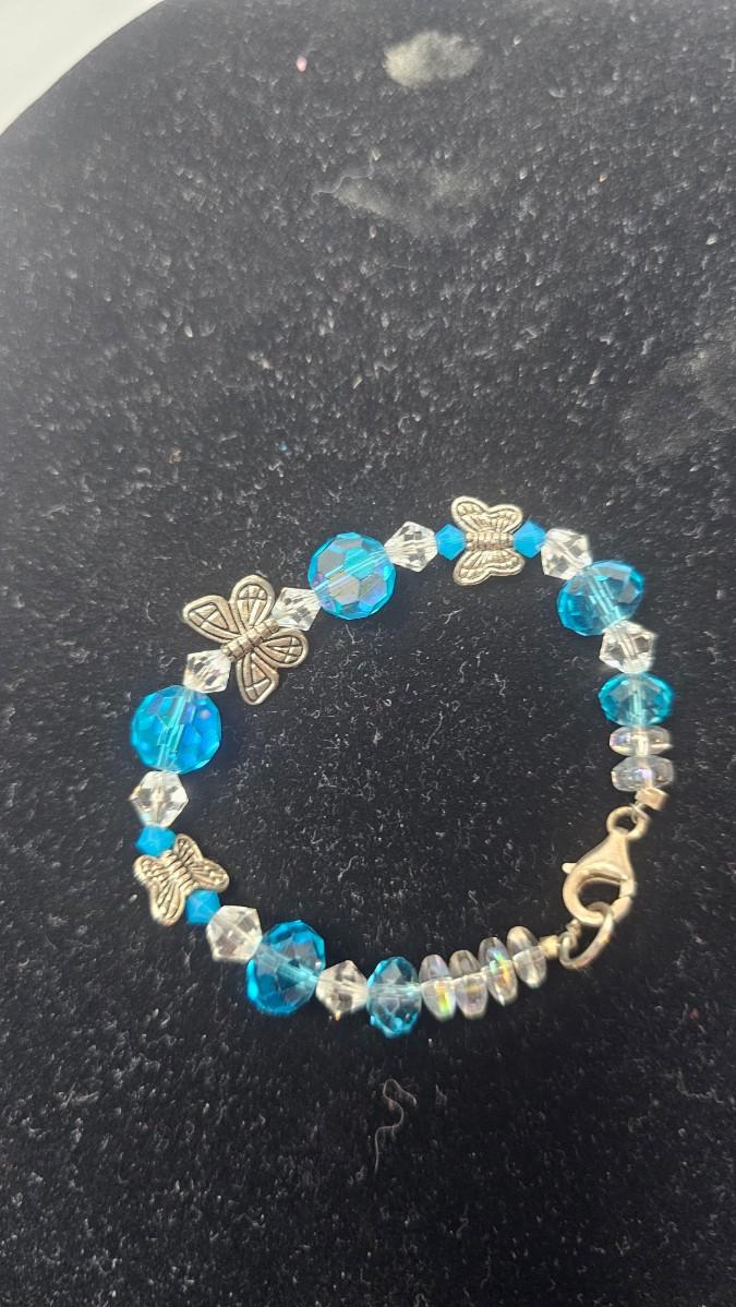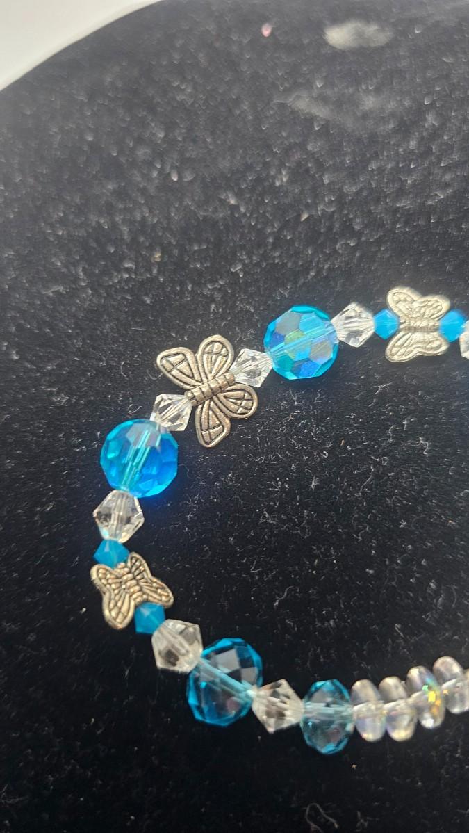 Blue Faceted Crystal Butterfly Charm Bracelet with Gold-Tone Clasp