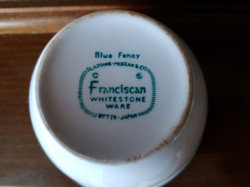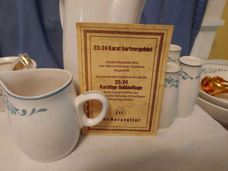 Please Don't Let The Sales Tax etc Scare You Away; There Is None; Can Pay In Cash. Blue fancy china, Franciscan white stone ware Japan with gold plated cutlery
