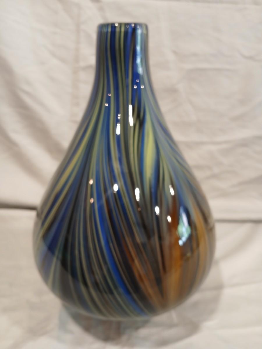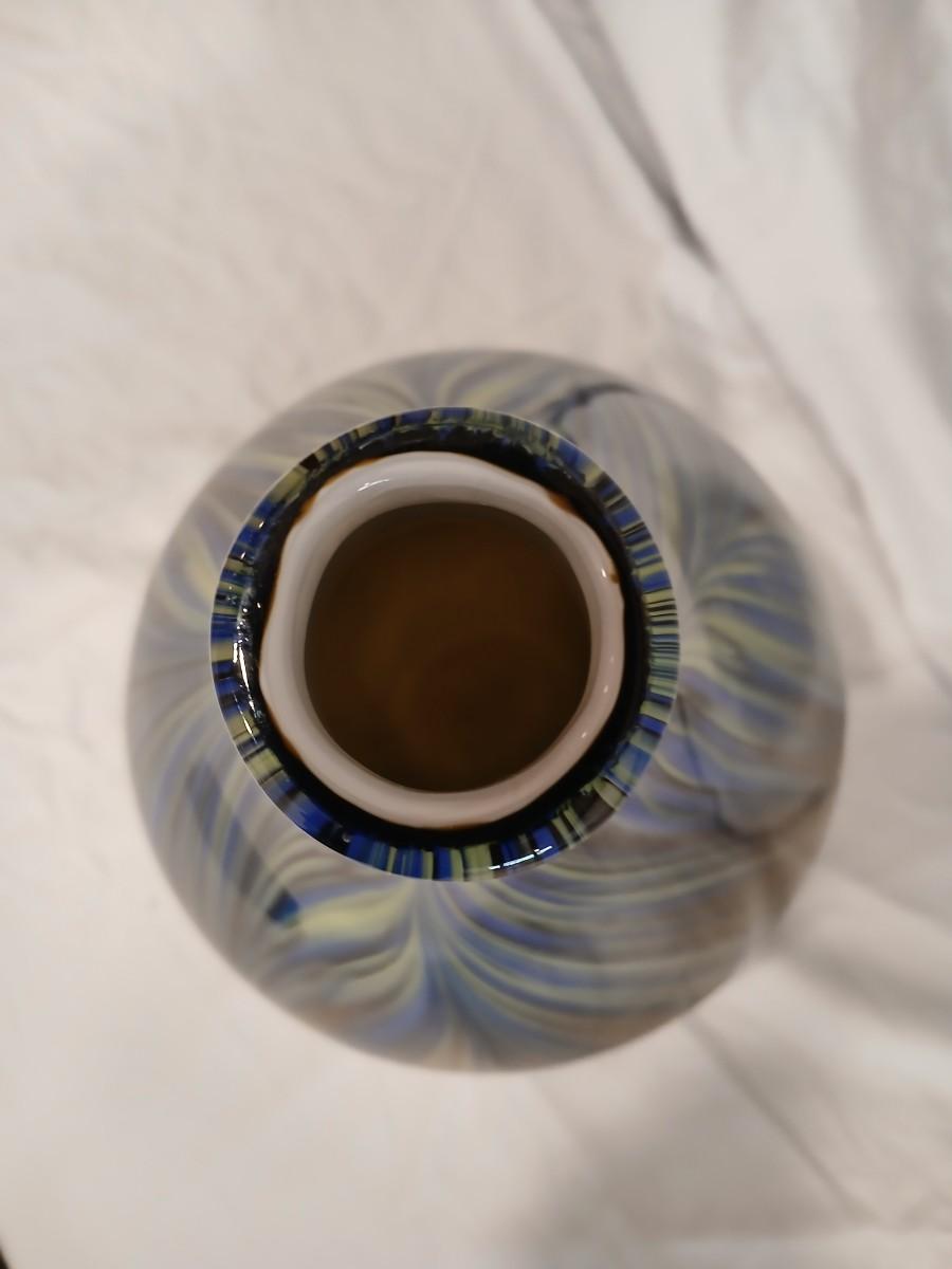 Blue Feathered Art Glass Vase