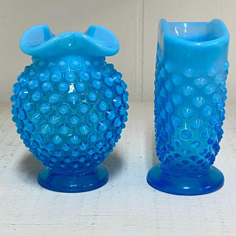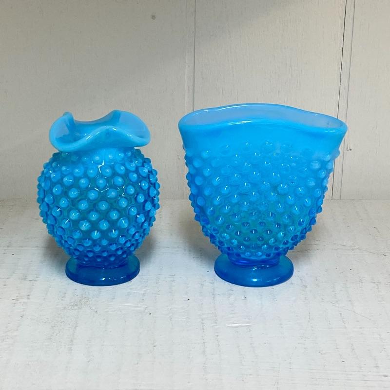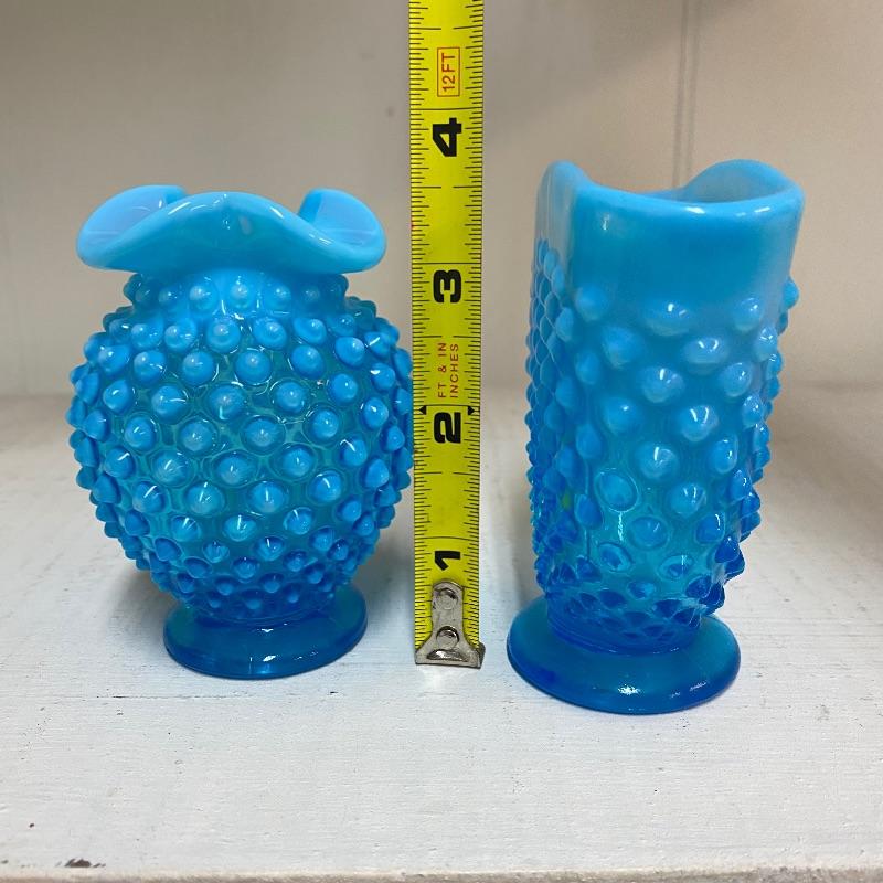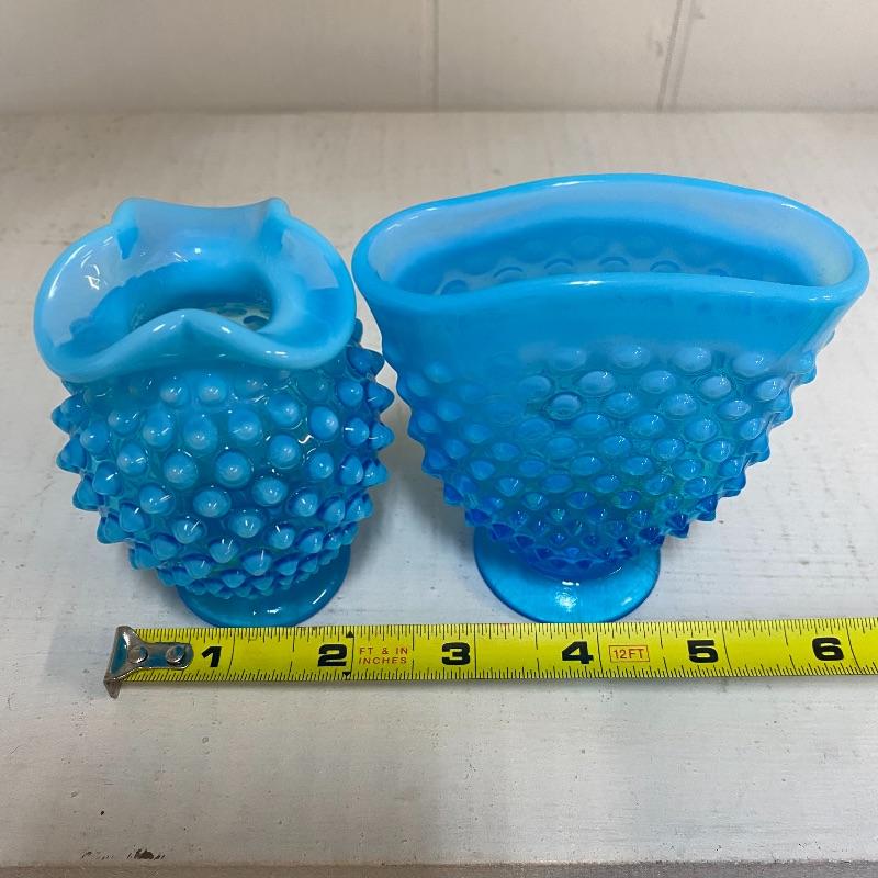 Blue Fenton Hobnail Vases / Ruffled & Fan