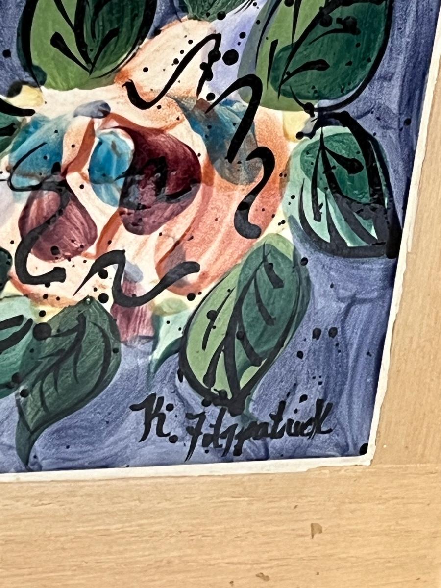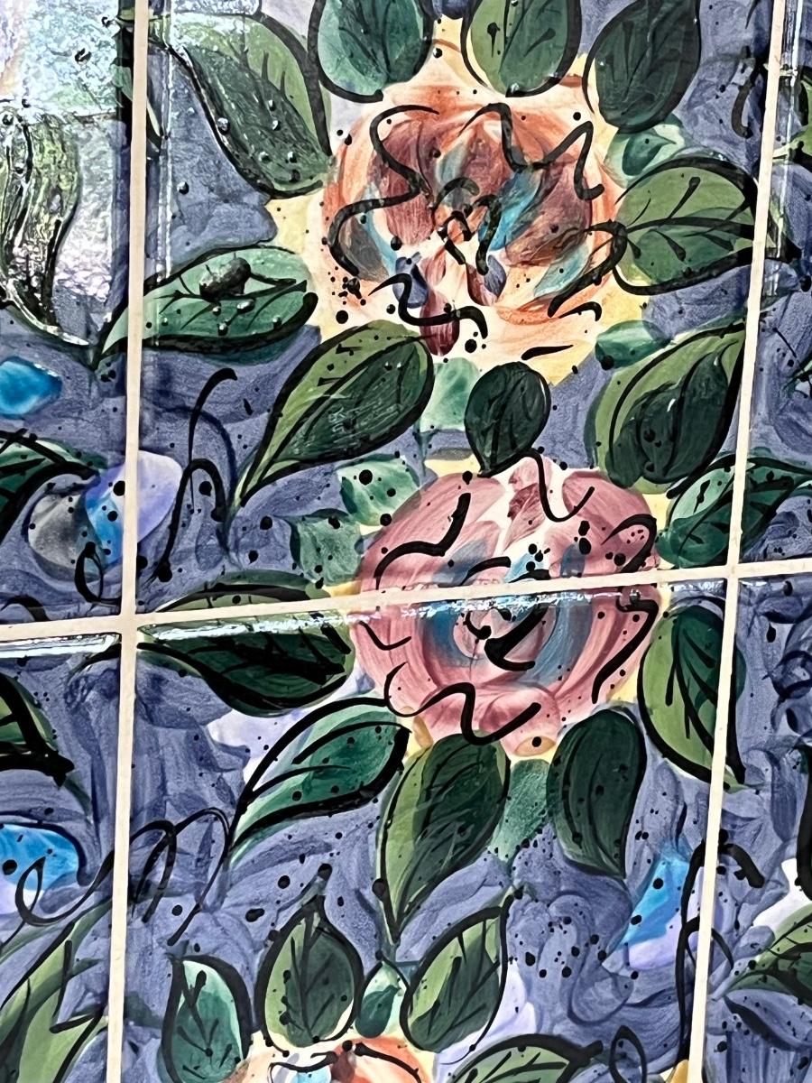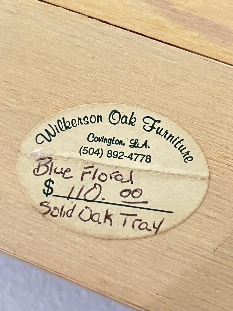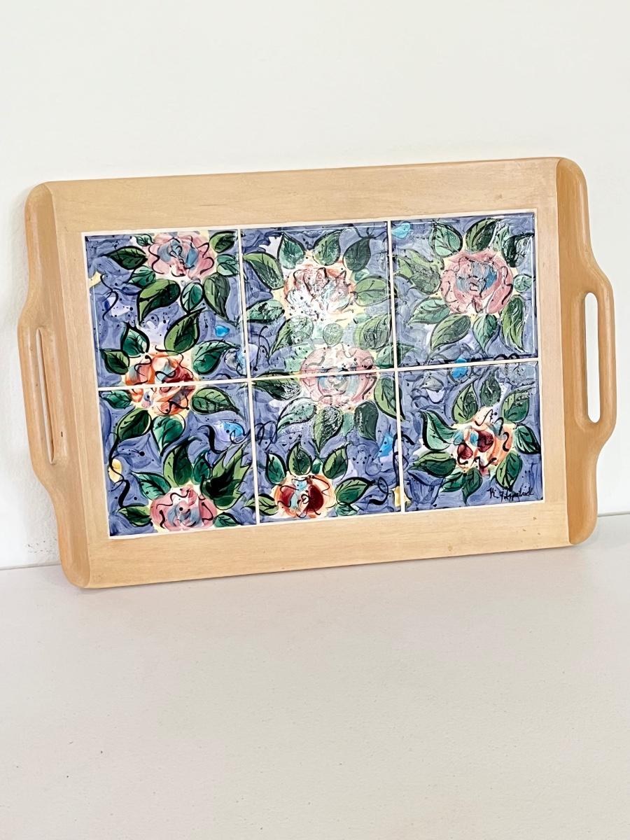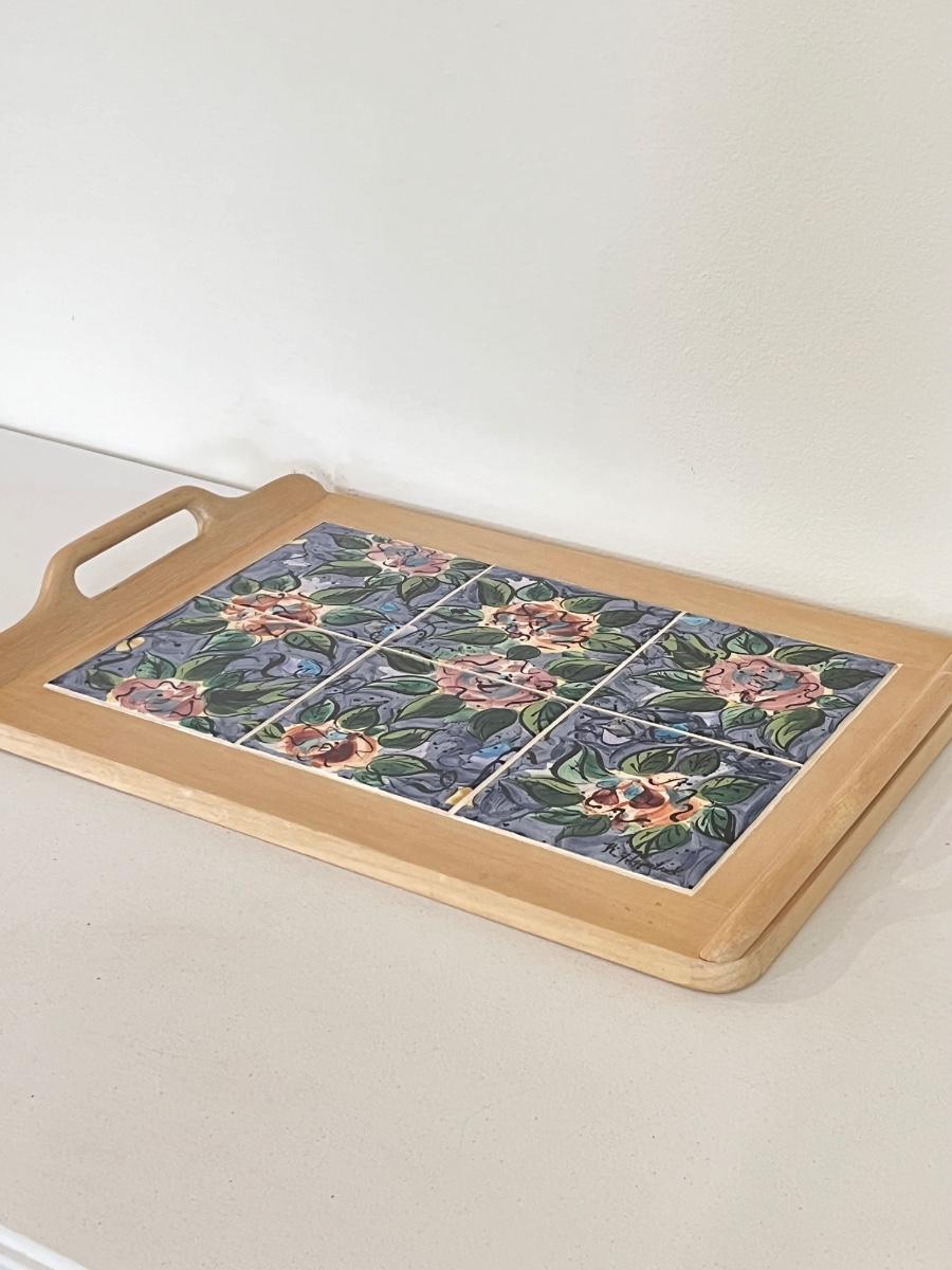 Blue Floral Ceramic Tiles In Solid Oak Serving Tray