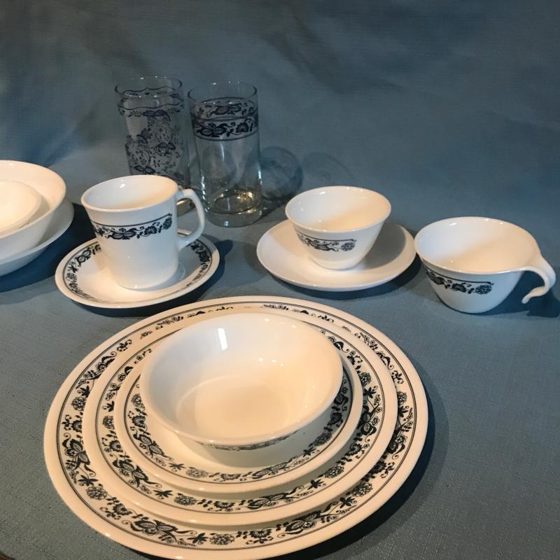 Lot includes blue flower corning ware with some plain white pieces included. See pics. No shipping available. Local pickup only in Hendersonville, NC.