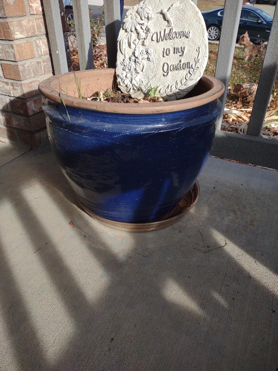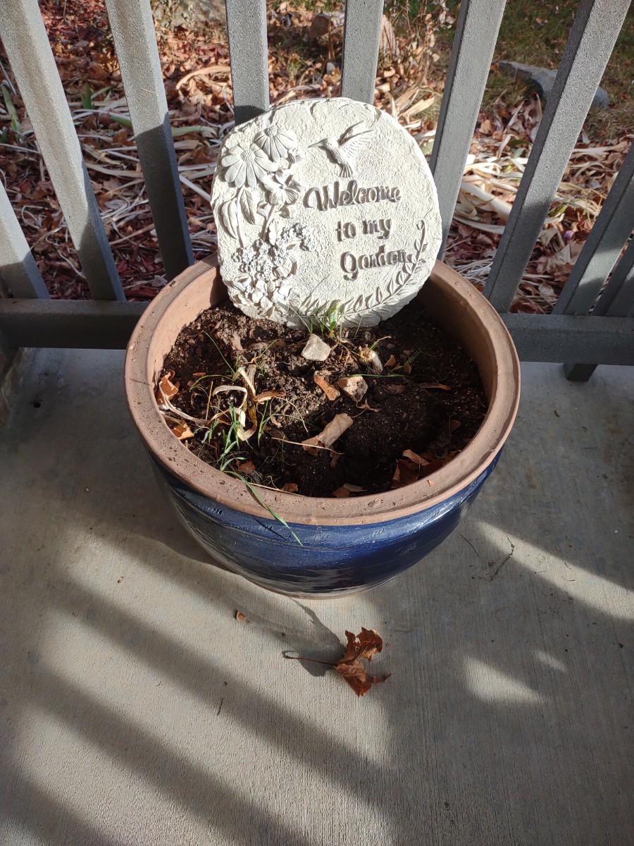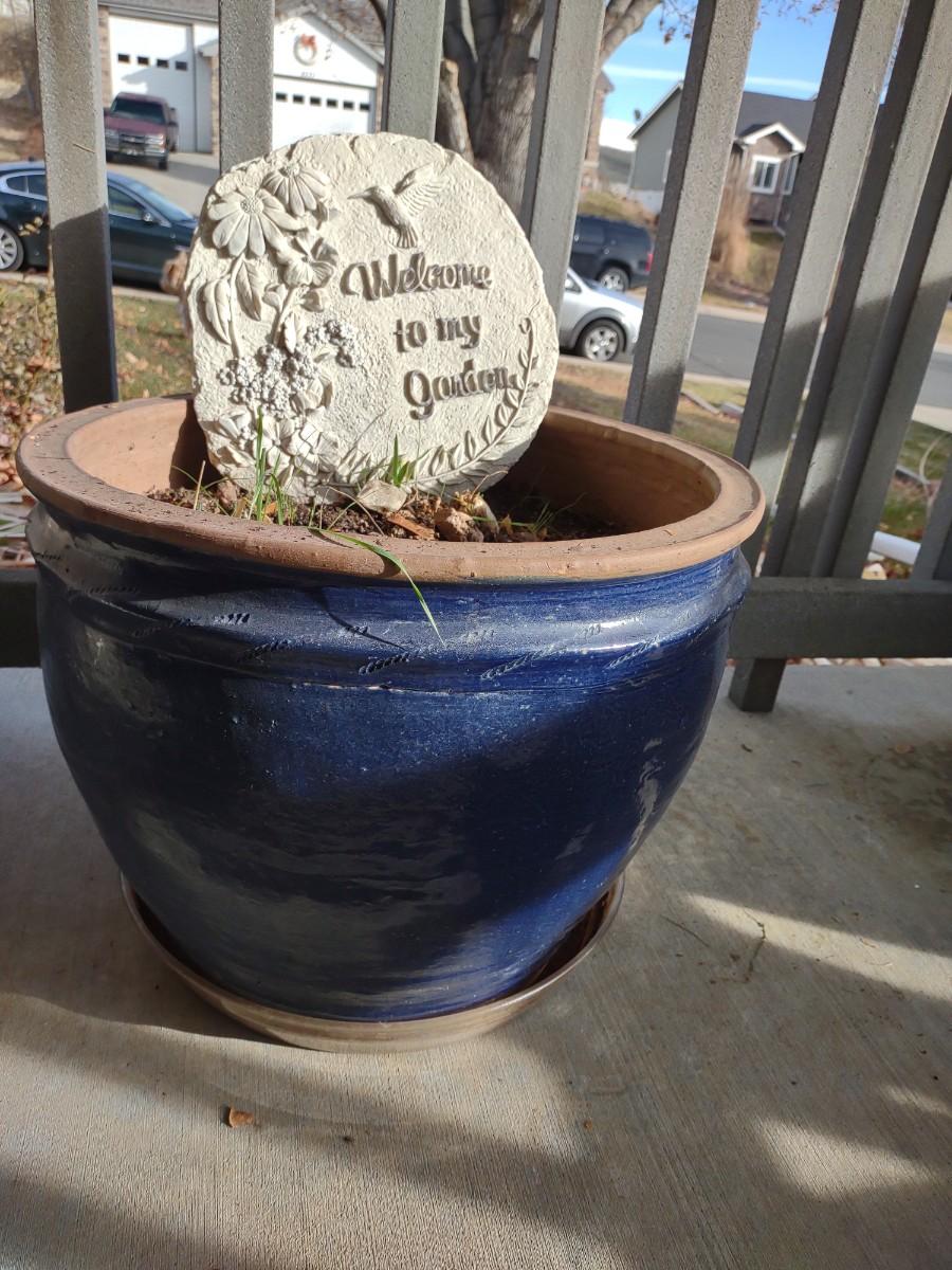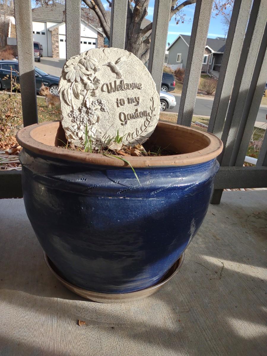 BLUE FLOWER POT, WELCOME TO MY GARDEN STONE