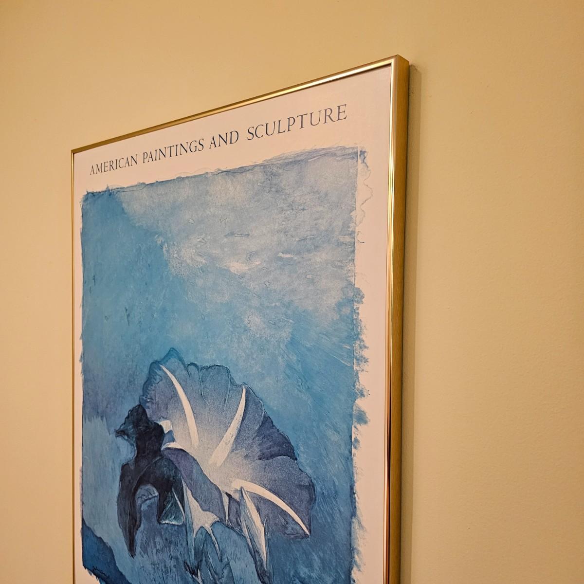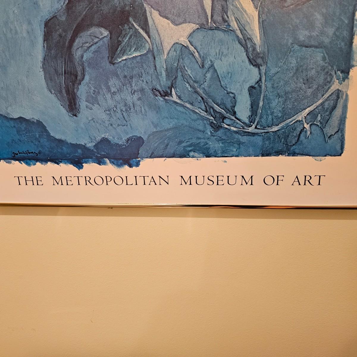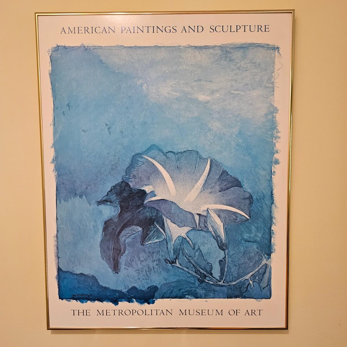 An art print from the Metropolitan Museum of Art, this subject appears to be a morning glory with printed artist signature. This piece measures 25" x 2" x 32"H. Gold tone metal frame. See photos for details. Shipping available. Shipping art can be costly. We suggest contacting our preferred local shipping provider, Postage Express, with dimensions and getting an estimate before bidding: (828) 670-5501 or postageexpress@yahoo.com.