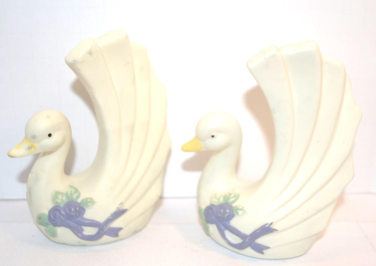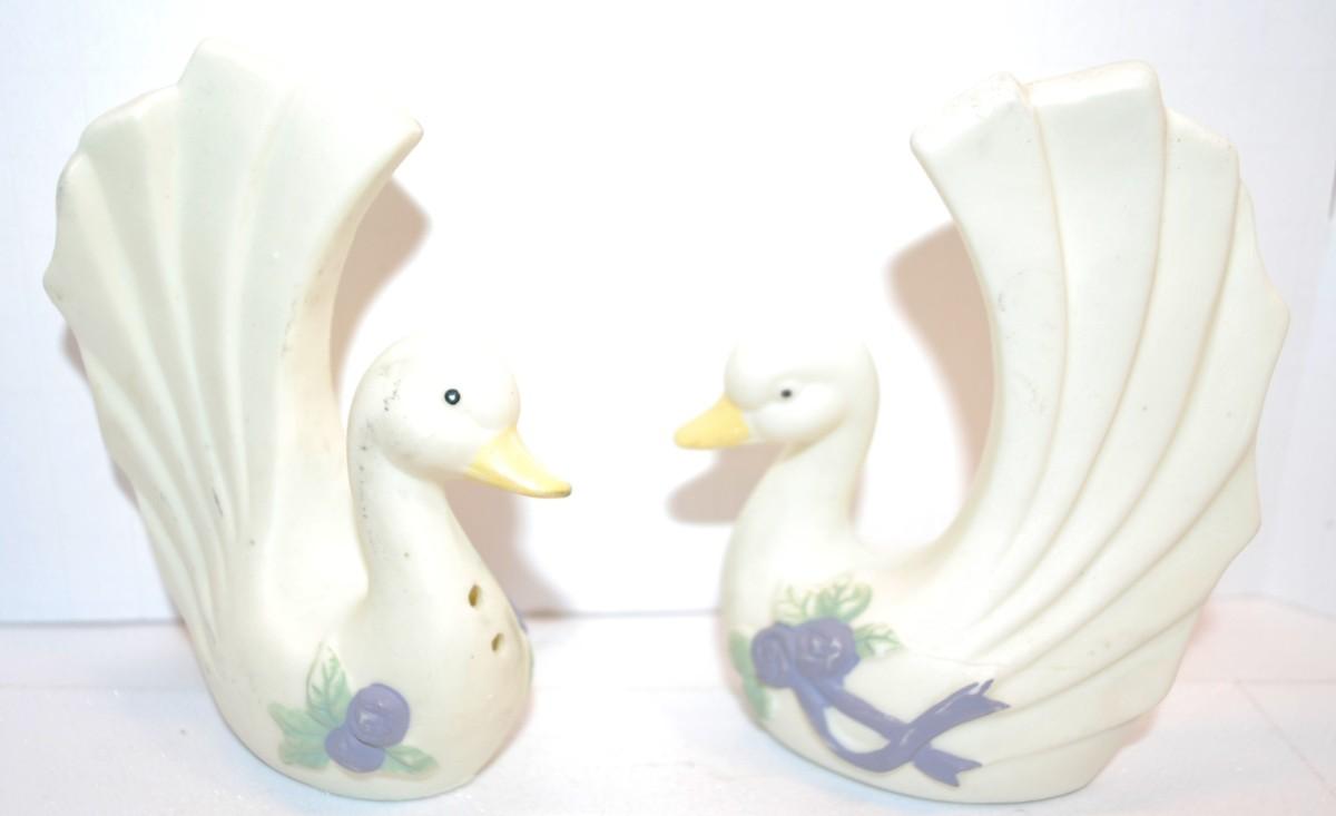 Blue Flowered Swan-Style Salt & Pepper Shaker Set 4" H