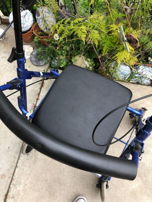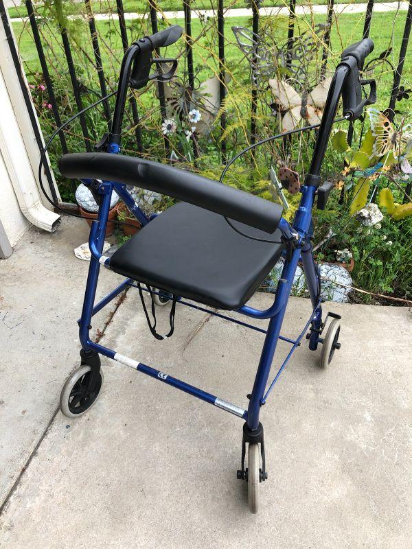 Foldable 4 Wheel Walker. Blue. Has brakes.