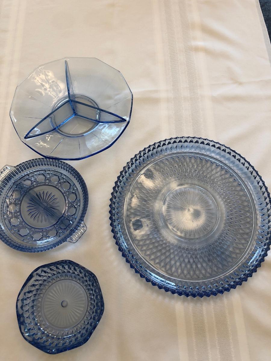 4 nice pieces of collectible glass, including candy dishes and a platter.