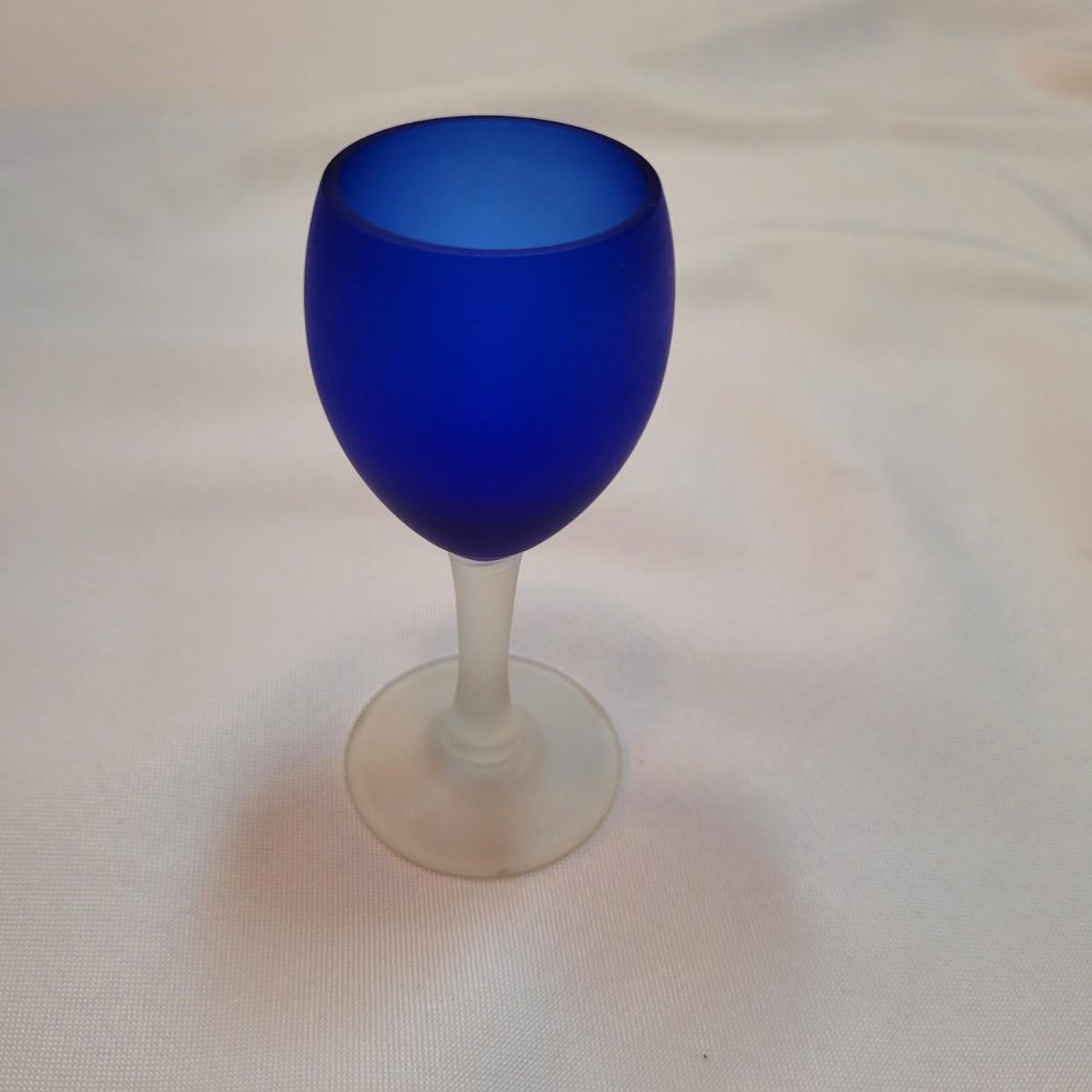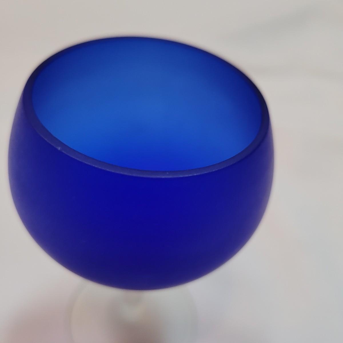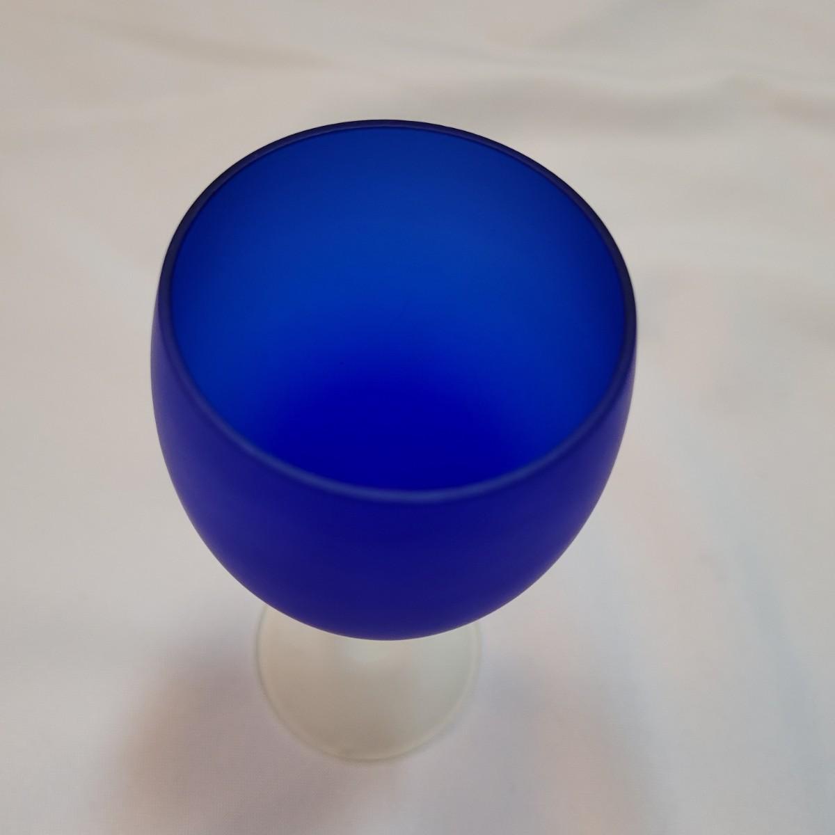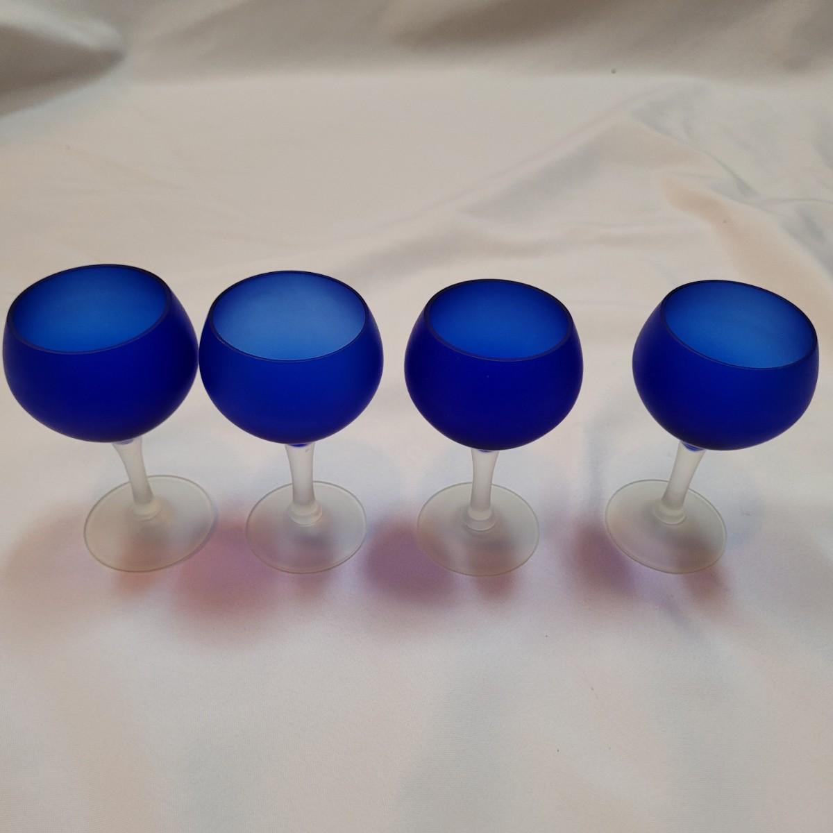 Set of eleven frosted stemware glasses. These glasses feature opaque stems and frosted blue cups. There are three different sizes and shapes. Three large, four medium, and four small cups included. Made from solid glass. The larger of the cups individually measure 2.5"D x 6"H.