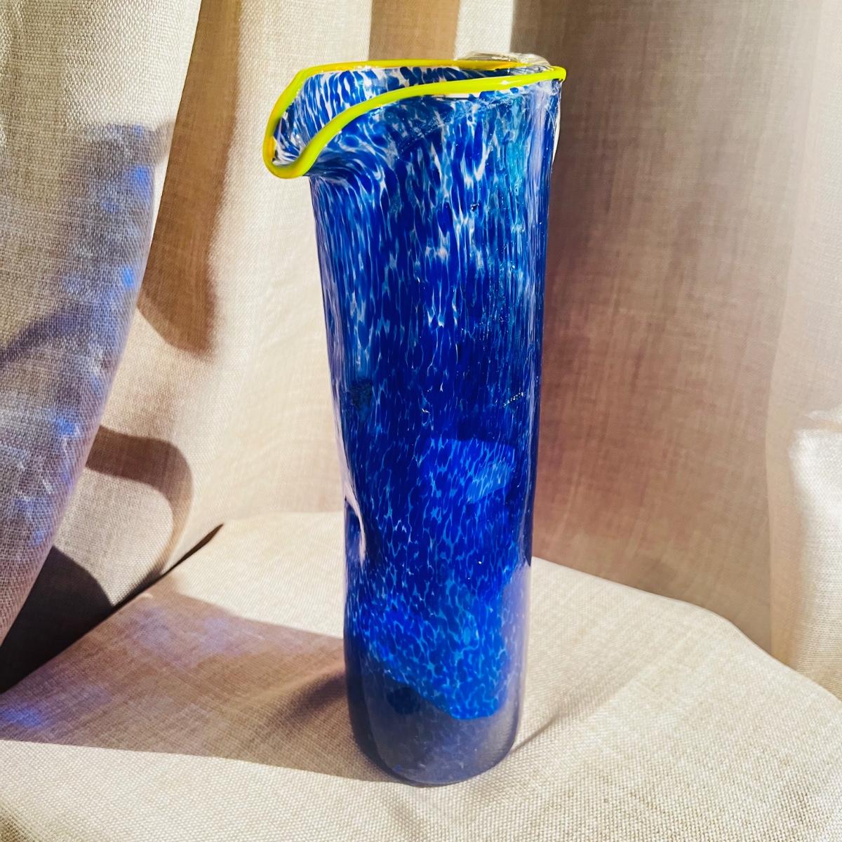 Nouveau Art Glass Pitcher Blue Cobalt Tall Hand Made