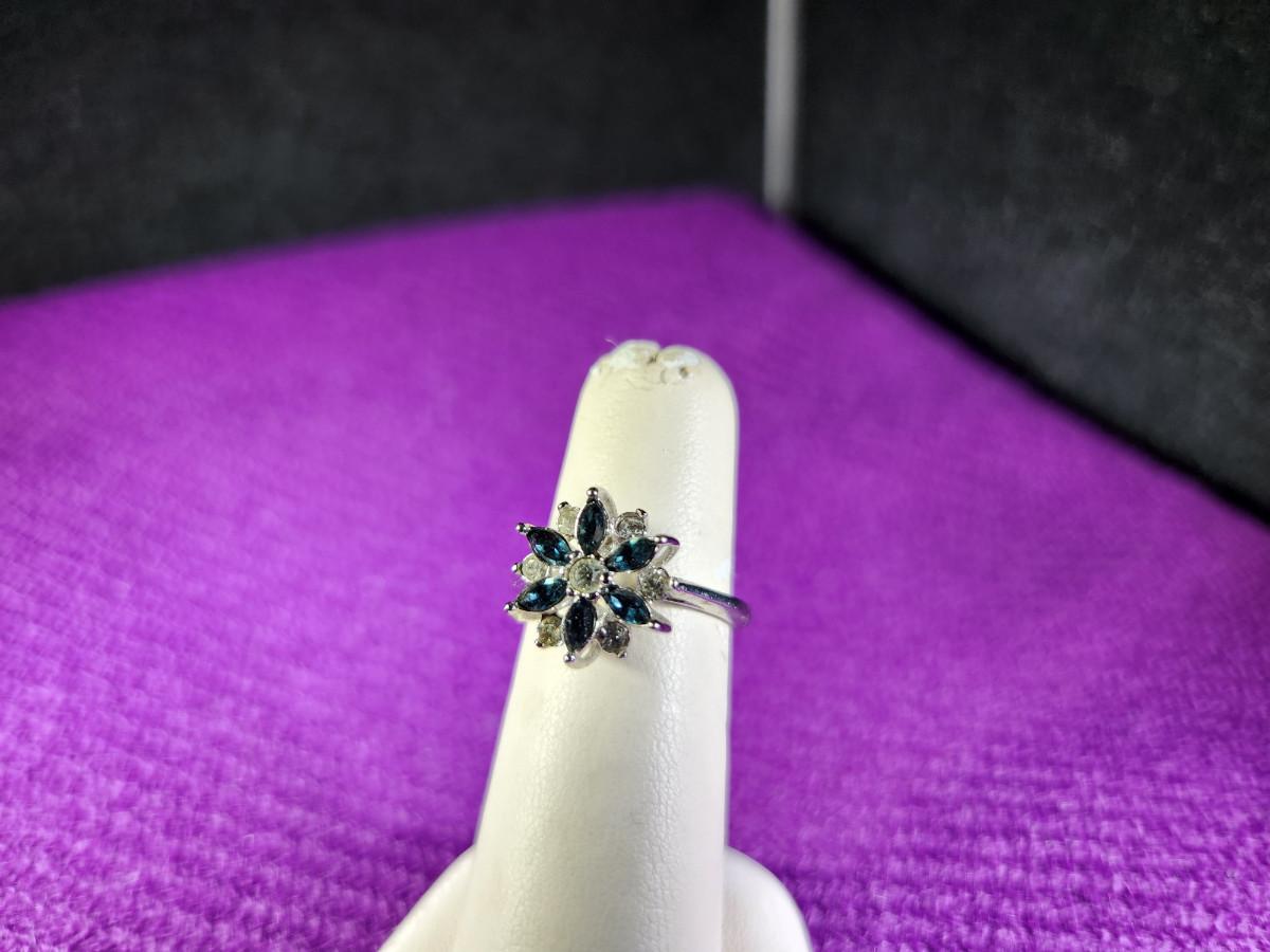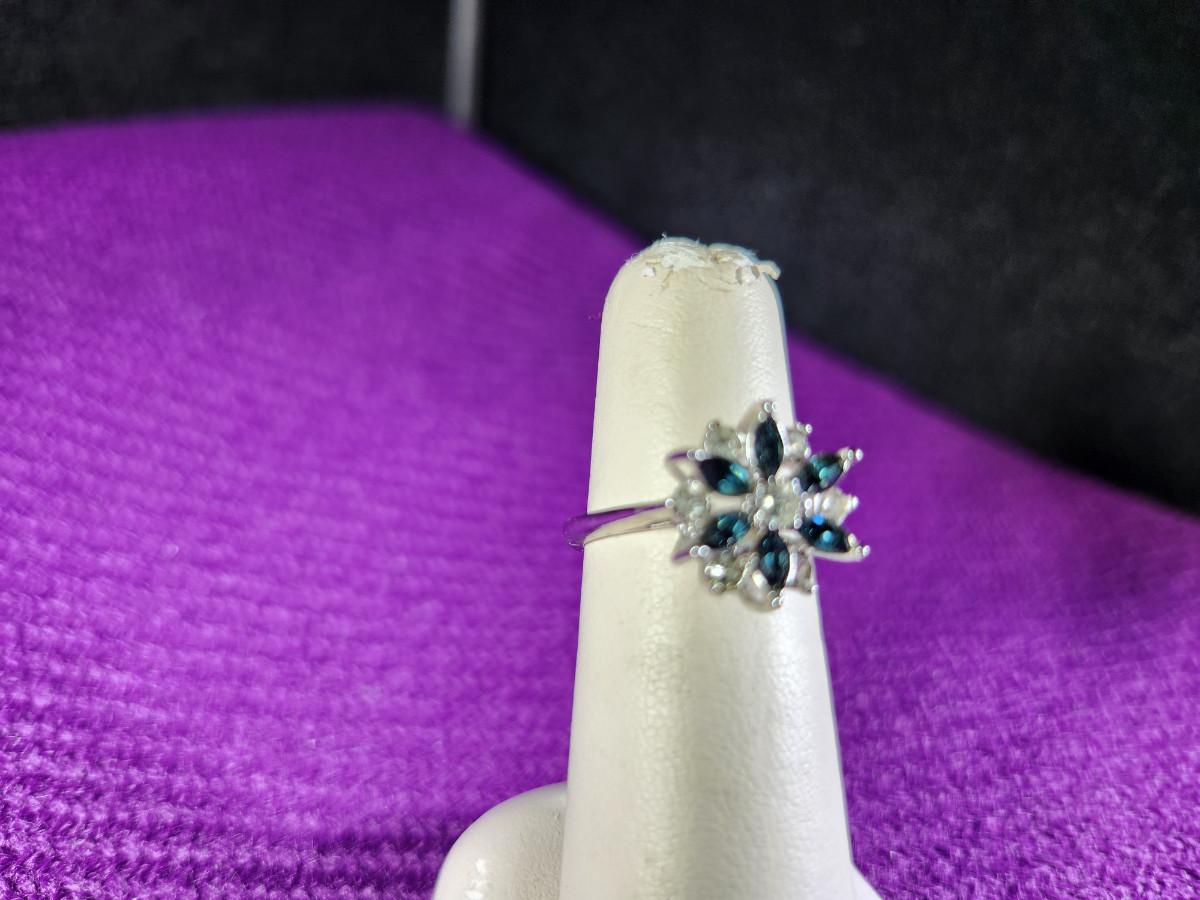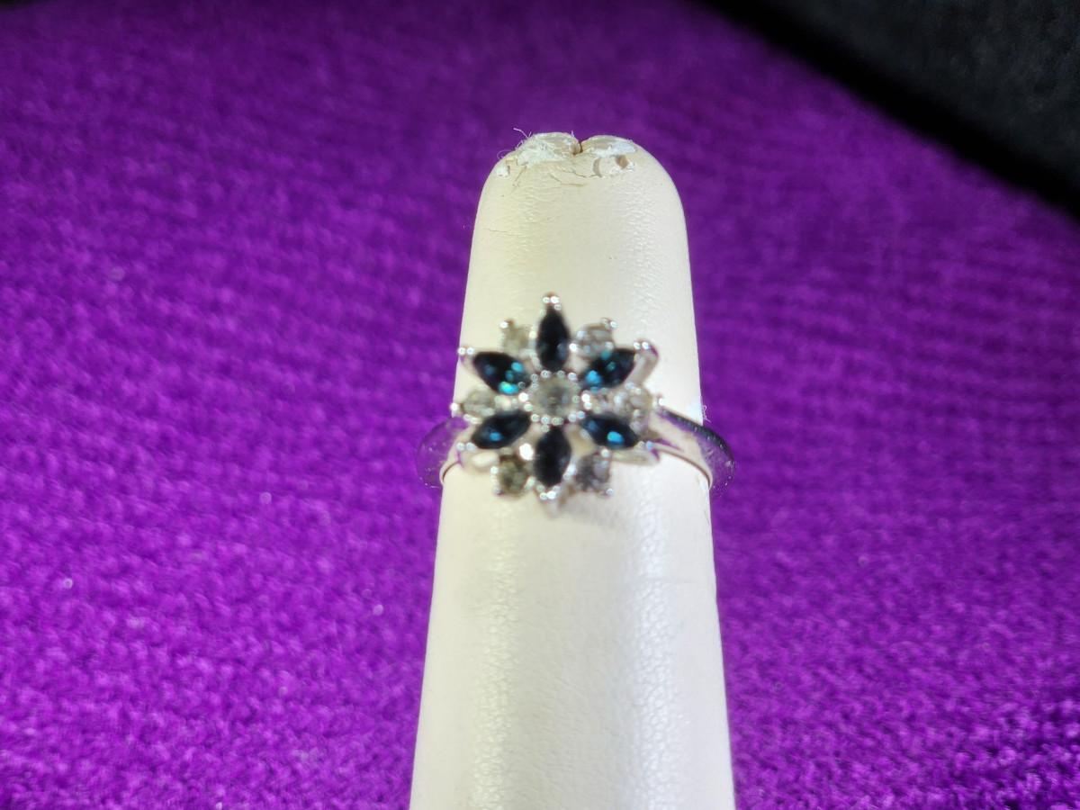 Blue Glass and Faux Diamond Costume Dinner Ring
