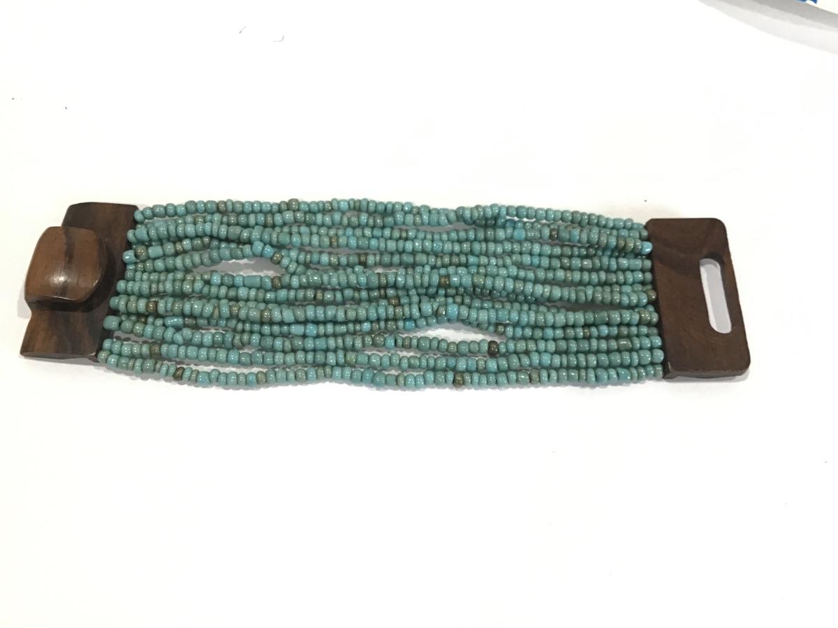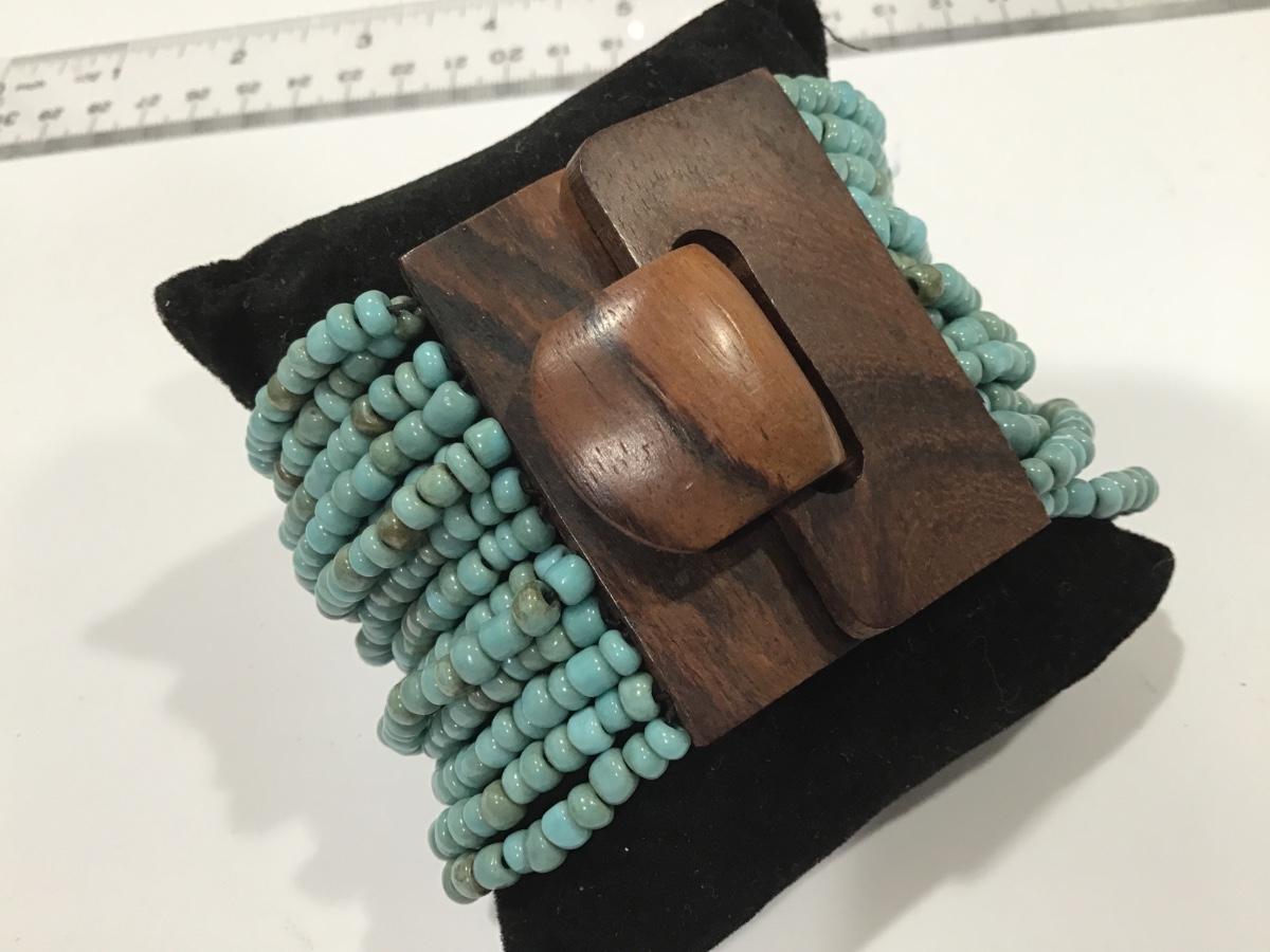 Blue Glass Bead Wood Clasp Boho