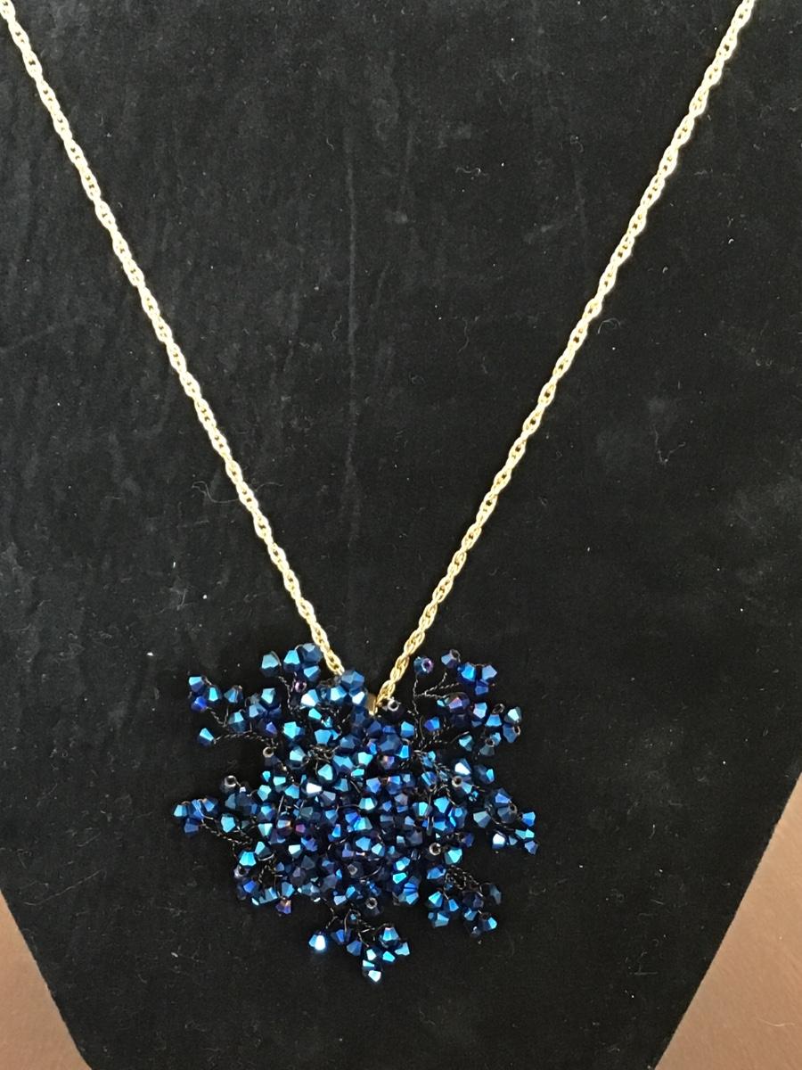 Blue Glass Beaded Necklace/ Brooch