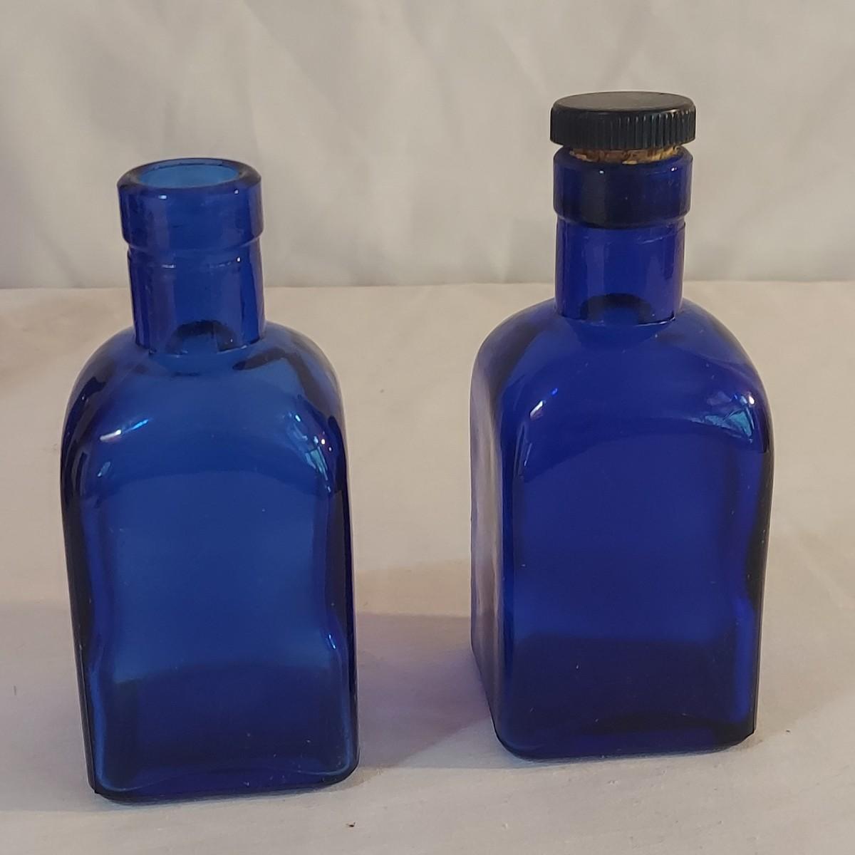 Lot includes six bottles and two canisters. The tallest bottle is 14"H. The shortest bottle with the silver top is 3"H. One bottle has a bit of label stuck to it. Some bottles have markings. Please see photos for details. Shipping available