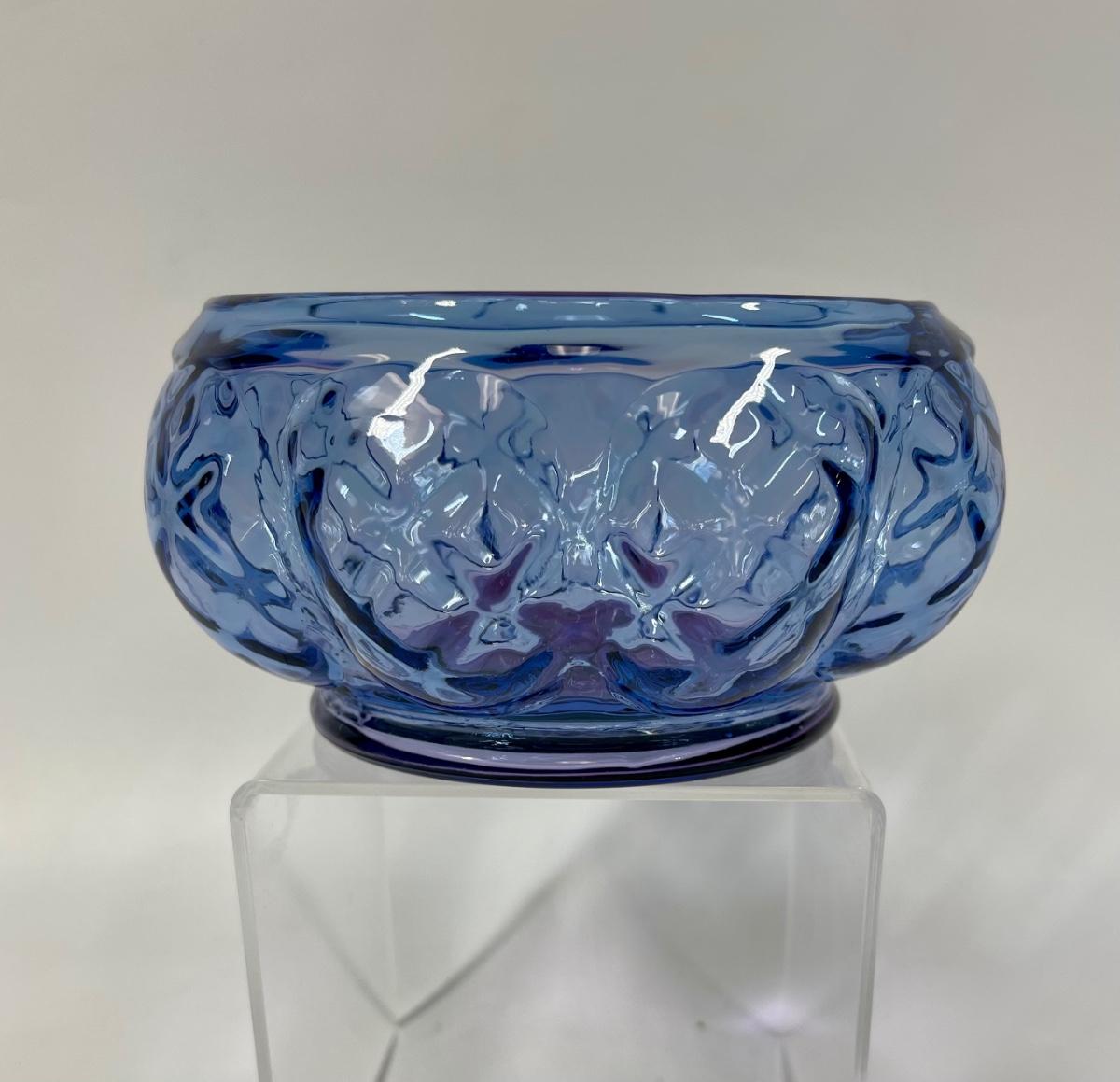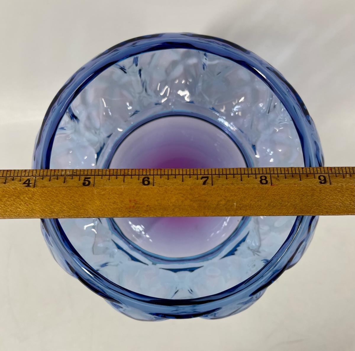 Blue glass bowl vase blue purple 5" dia