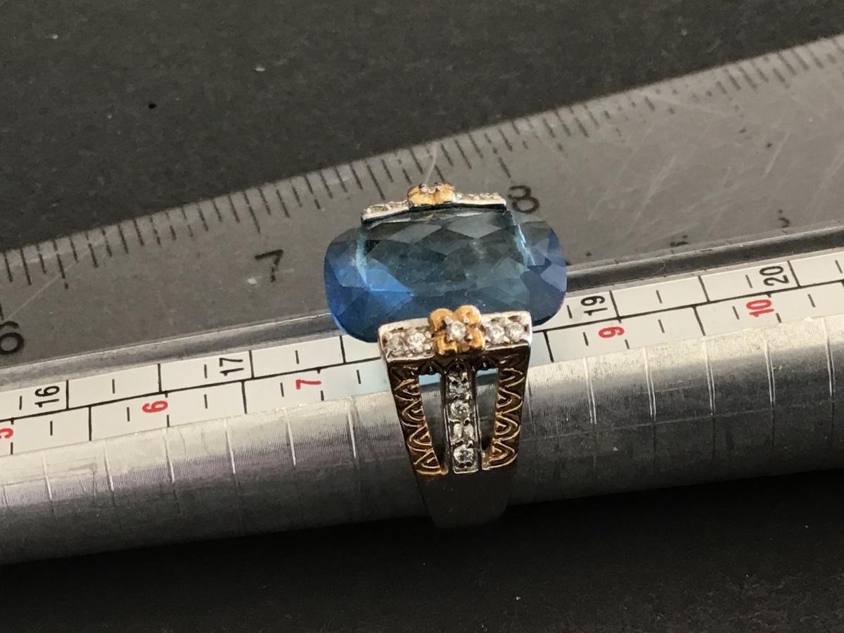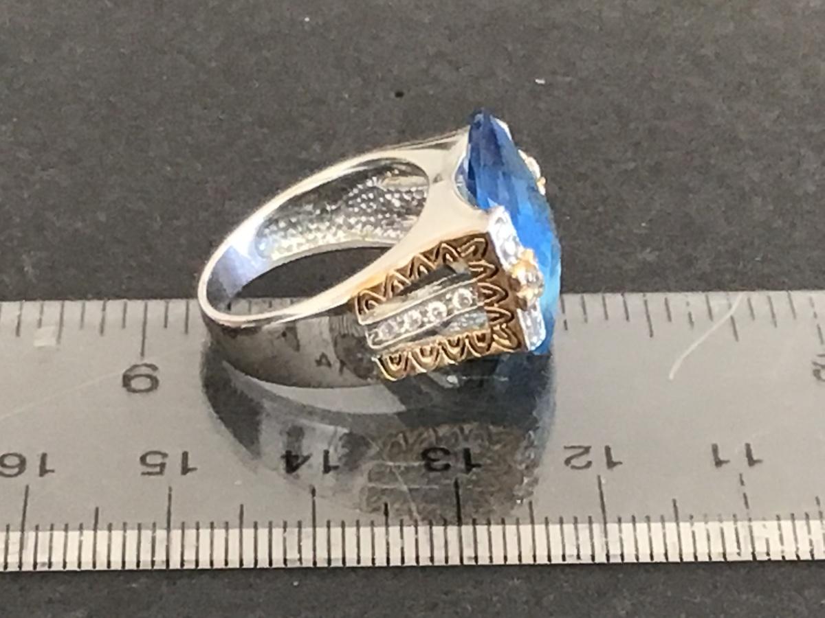 Blue Glass Chunky Statement Ring. Gold silver Tones