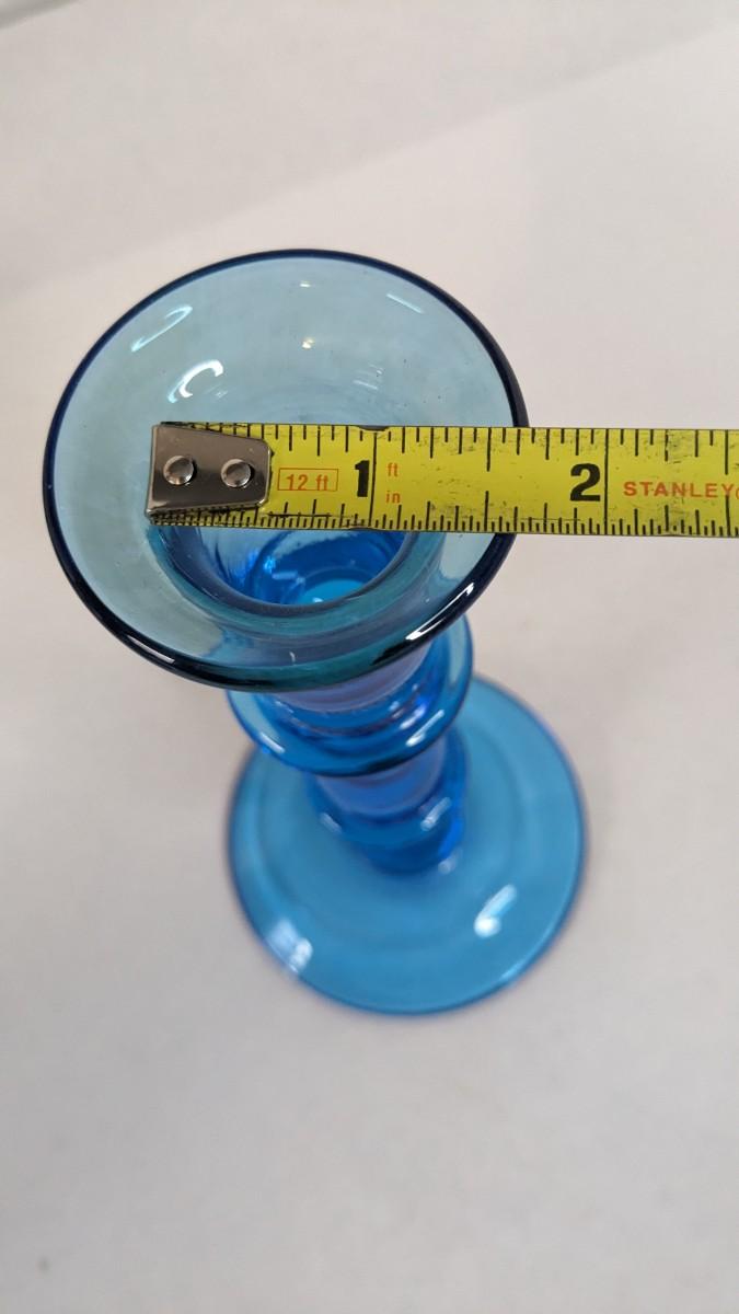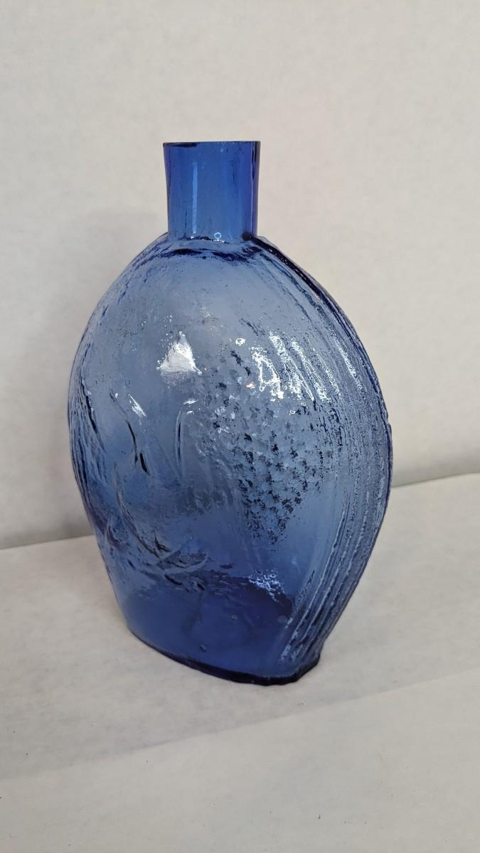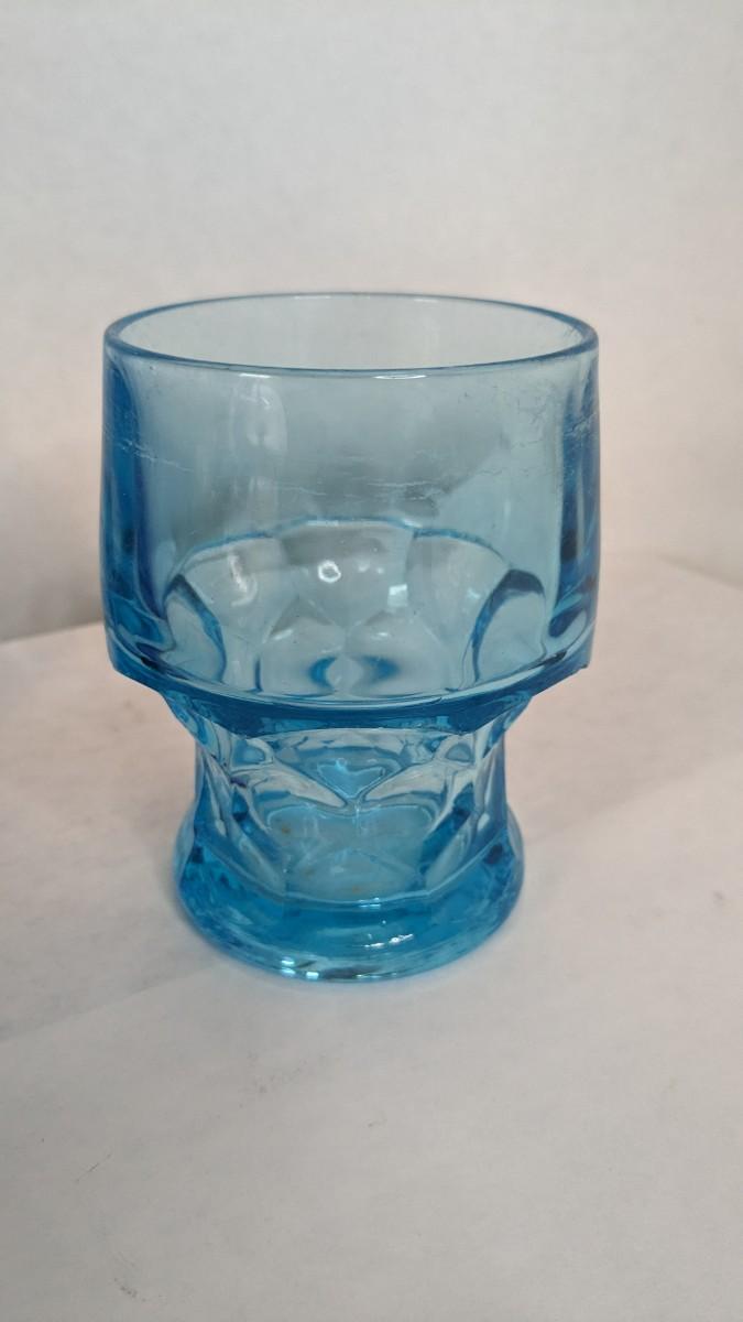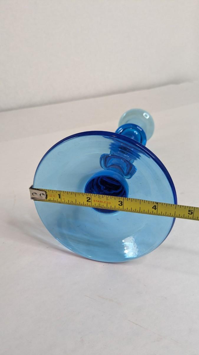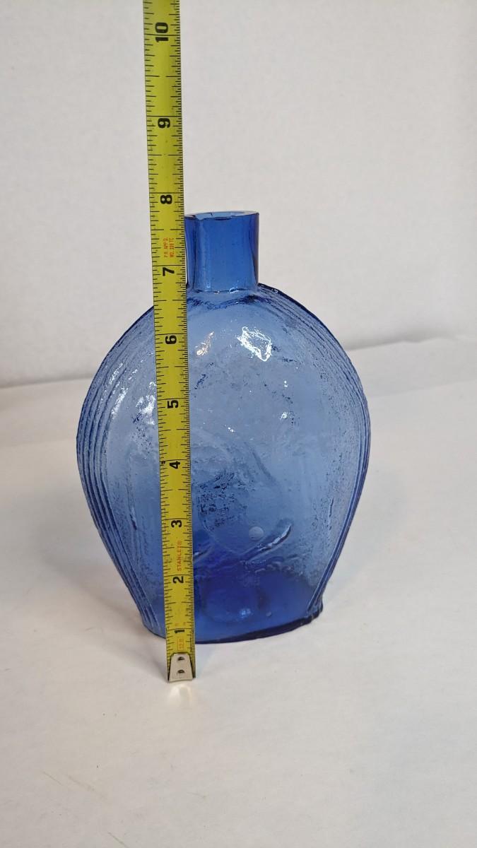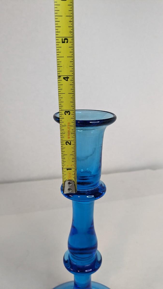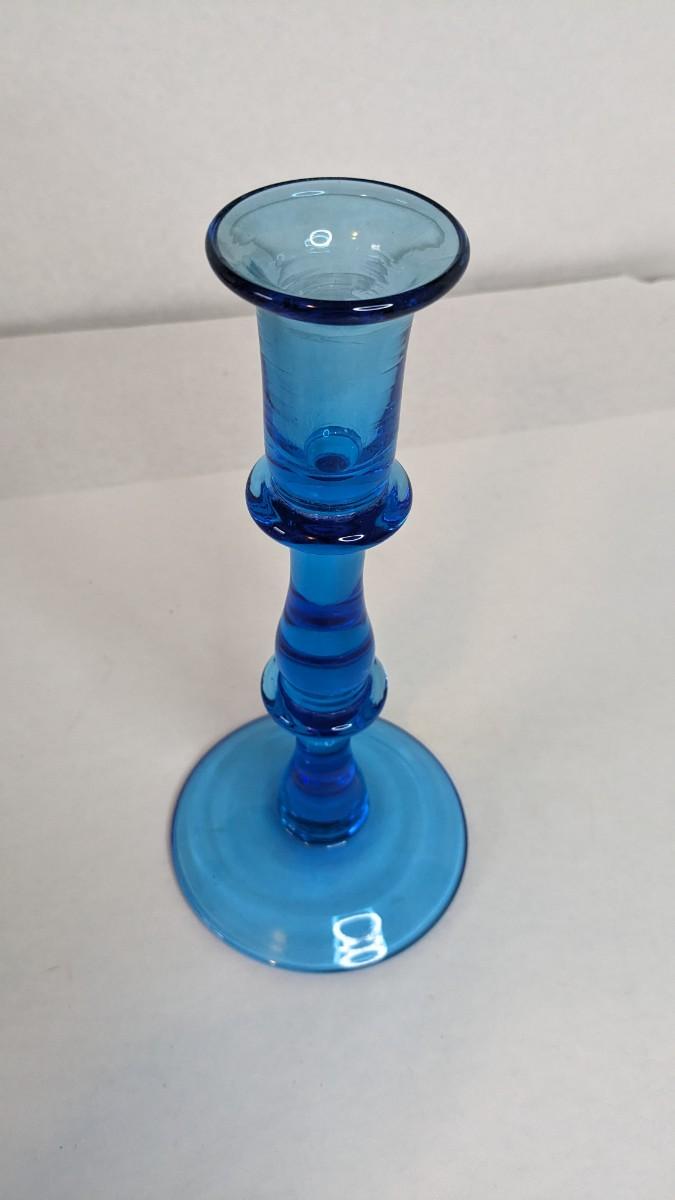 6 total pieces including beautiful Wheaton blue grape jug, Dr. Chandler's Jamaican Ginger Root Bitters barrel bottle, ink well, Fire King covered dish, 4 1/8" aquamarine honeycomb tumbler, and 10" candlestick holder. Extra handling fees will apply