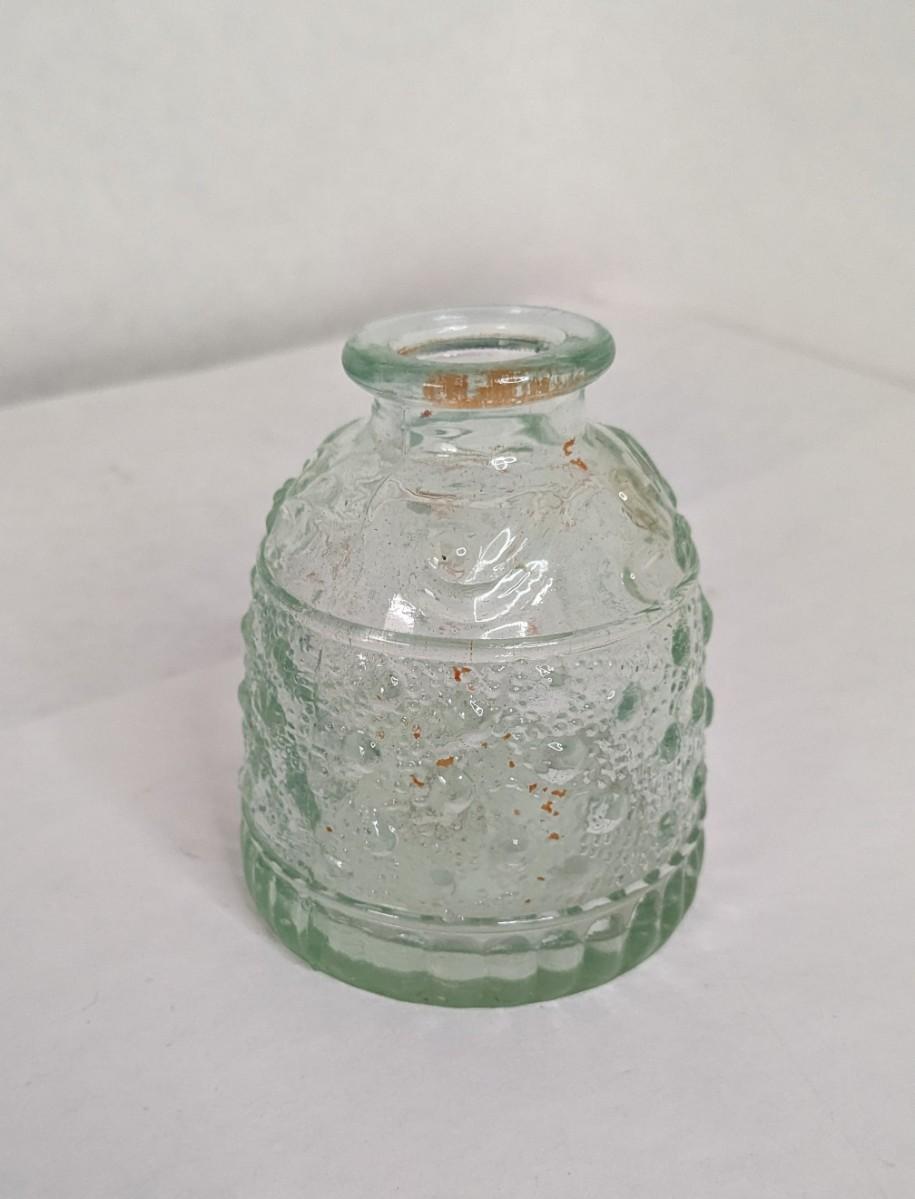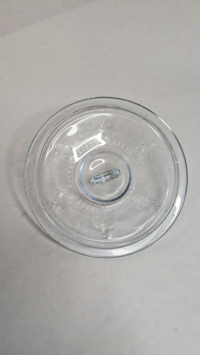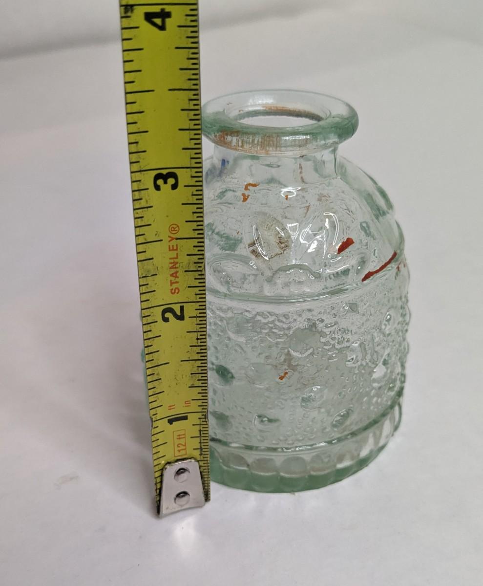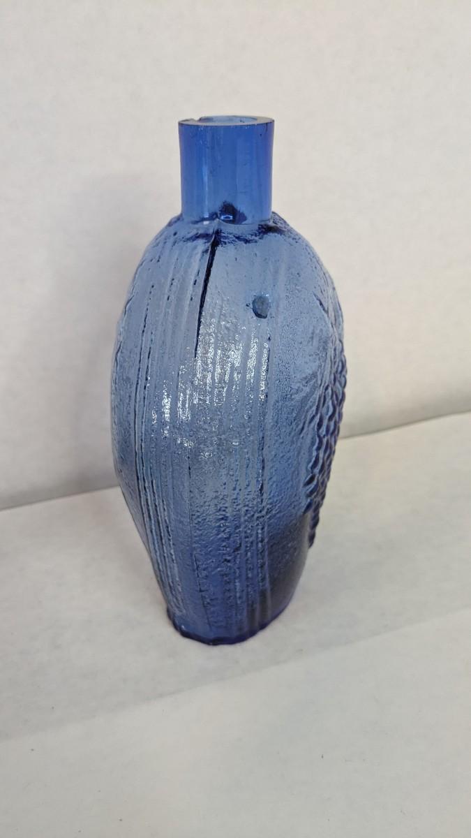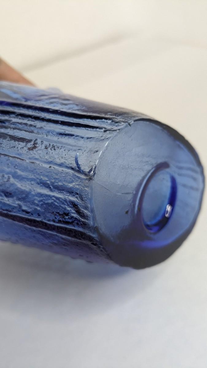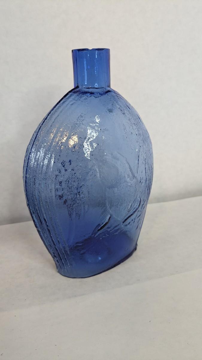 6 total pieces including beautiful Wheaton blue grape jug, Dr. Chandler's Jamaican Ginger Root Bitters barrel bottle, ink well, Fire King covered dish, 4 1/8" aquamarine honeycomb tumbler, and 10" candlestick holder. Extra handling fees will apply