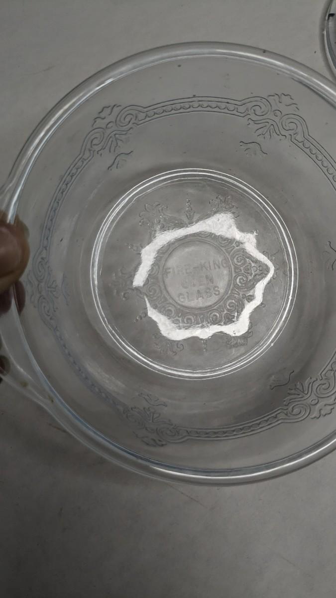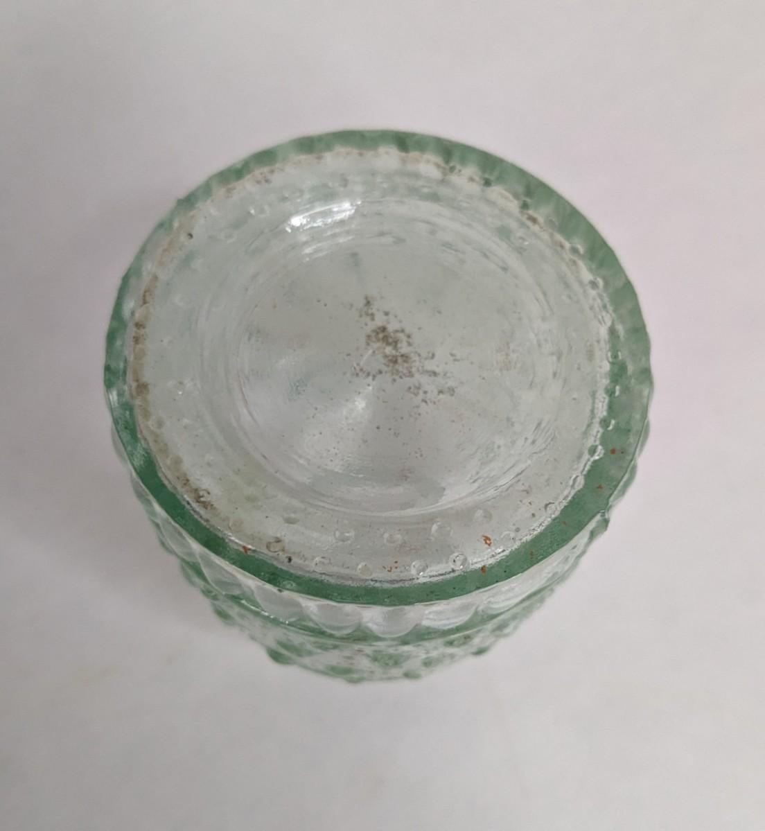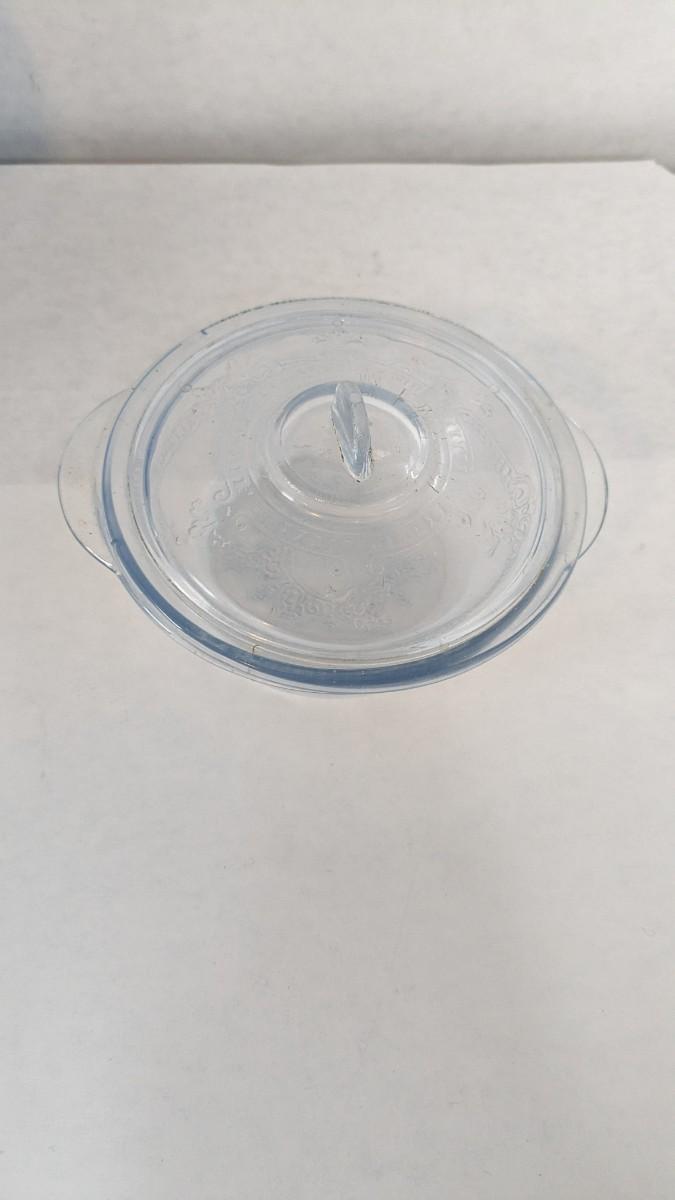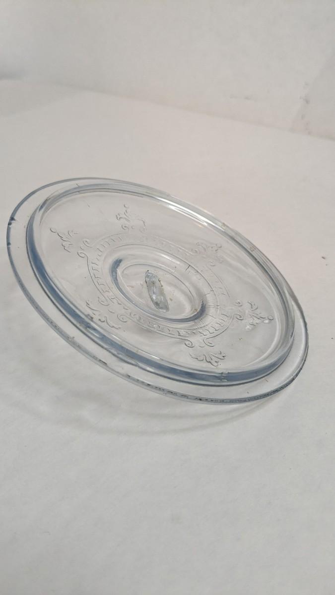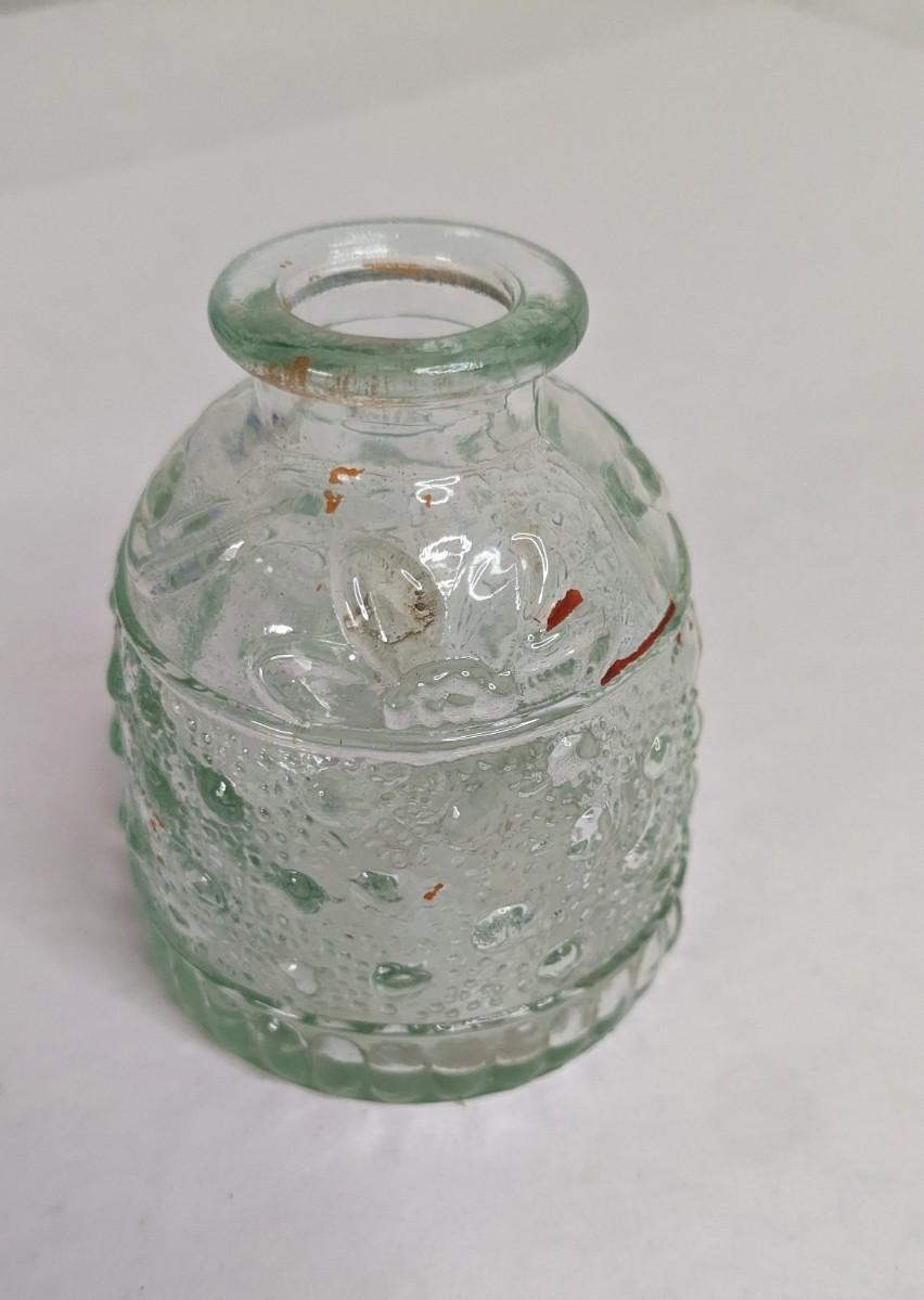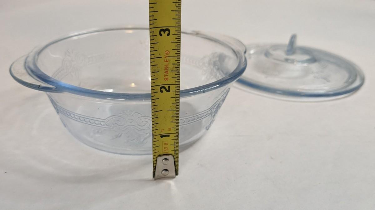 6 total pieces including beautiful Wheaton blue grape jug, Dr. Chandler's Jamaican Ginger Root Bitters barrel bottle, ink well, Fire King covered dish, 4 1/8" aquamarine honeycomb tumbler, and 10" candlestick holder. Extra handling fees will apply