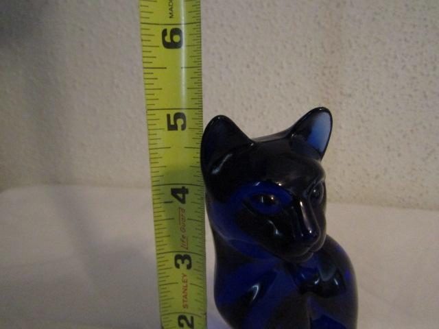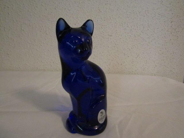 Blue Glass Fenton Cat 5"