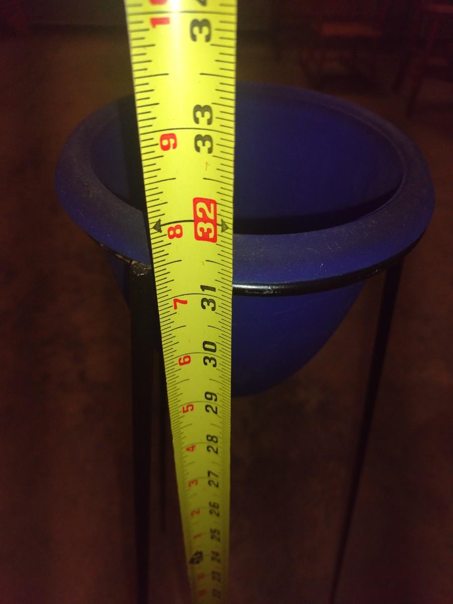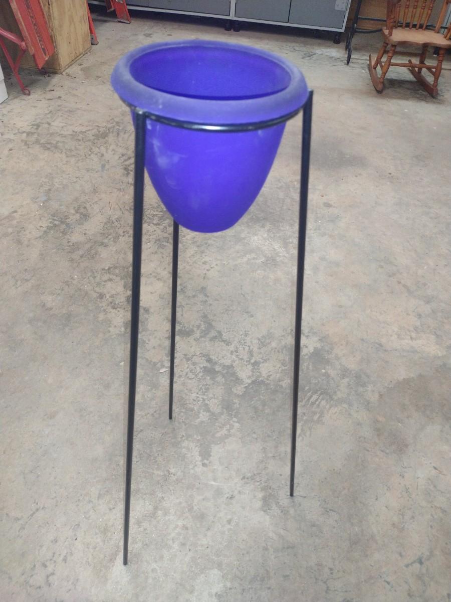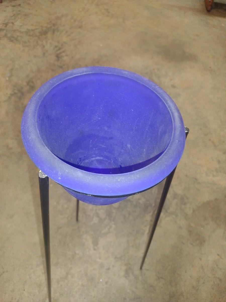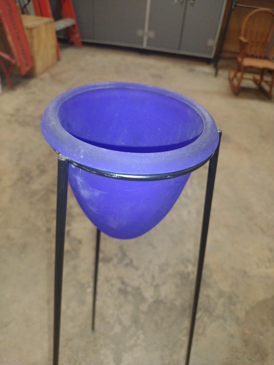 Blue Glass Flower Holder with Metal Tripod Stand