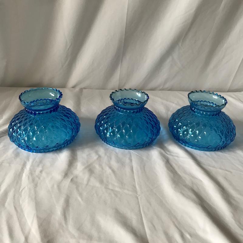 Lot contains three glass lamp shades. Bottom openings are approx. 5.75” wide. Overall measurements are approx. 6.5” in diameter and 4.5” tall. Shipping or local pickup in Hendersonville, NC.