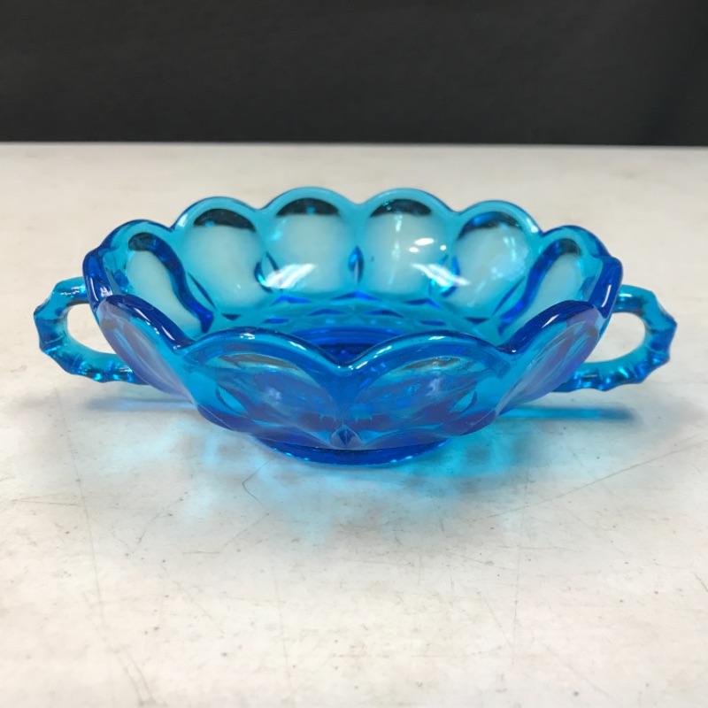 Vintage Anchor Hocking Fairfield Blue Glass Nut Candy Trinket Double Handle Bowl Dish