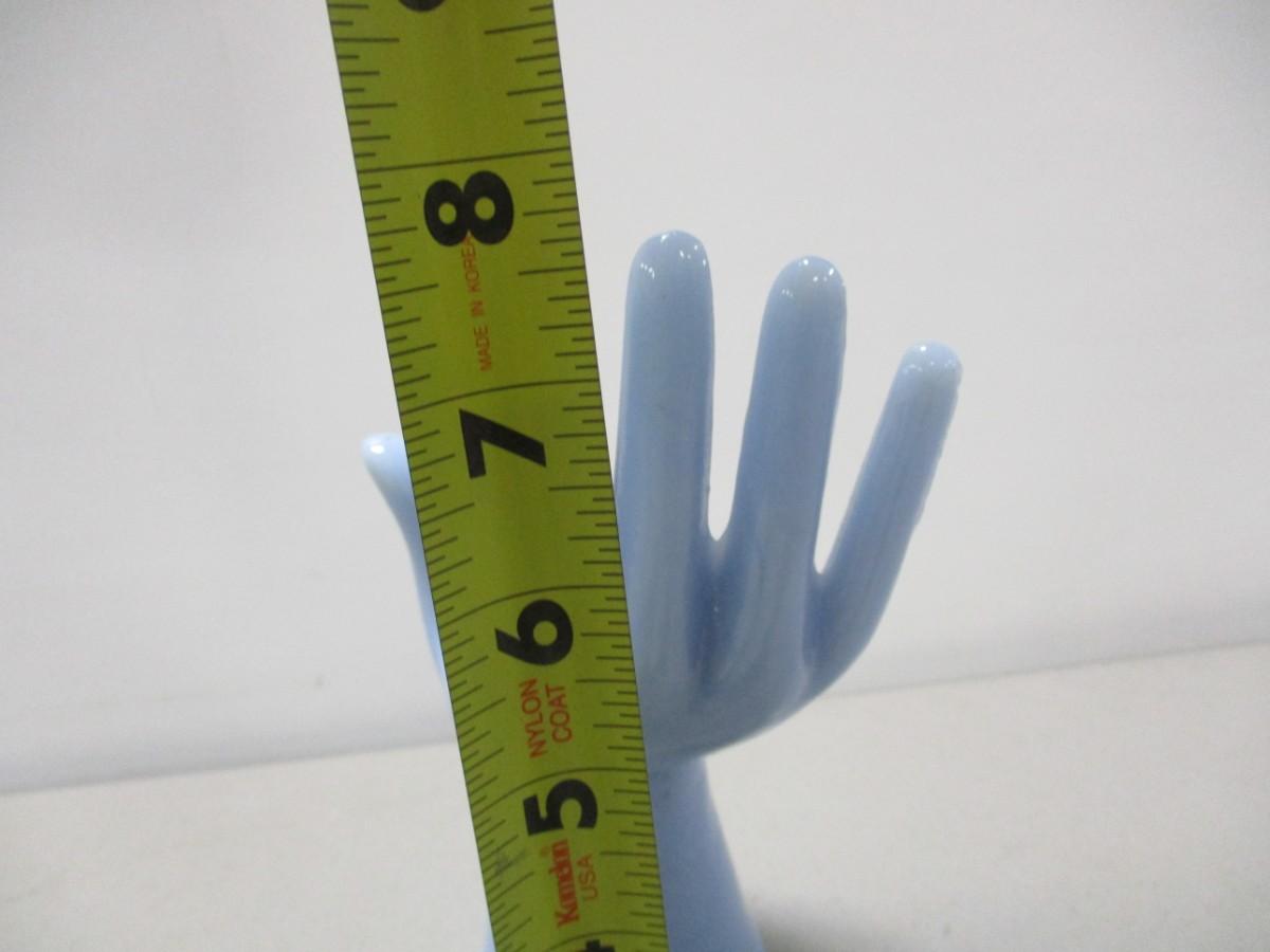 Blue Glass Hand Jewelry Display Ring Holder Hollow Base 7 3/4" Tall