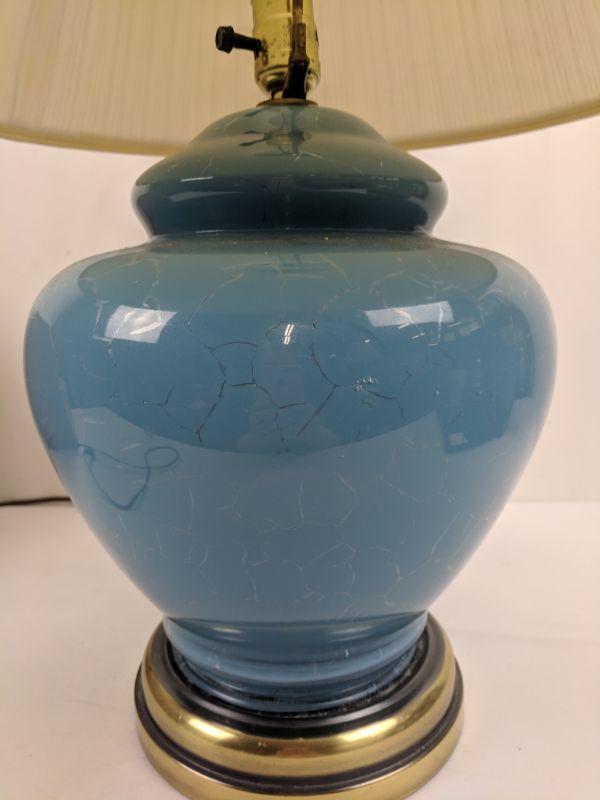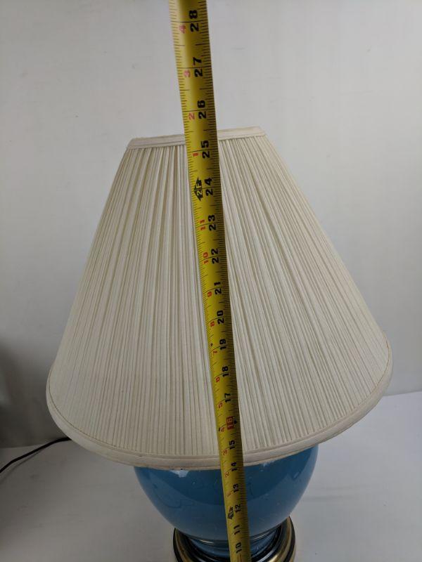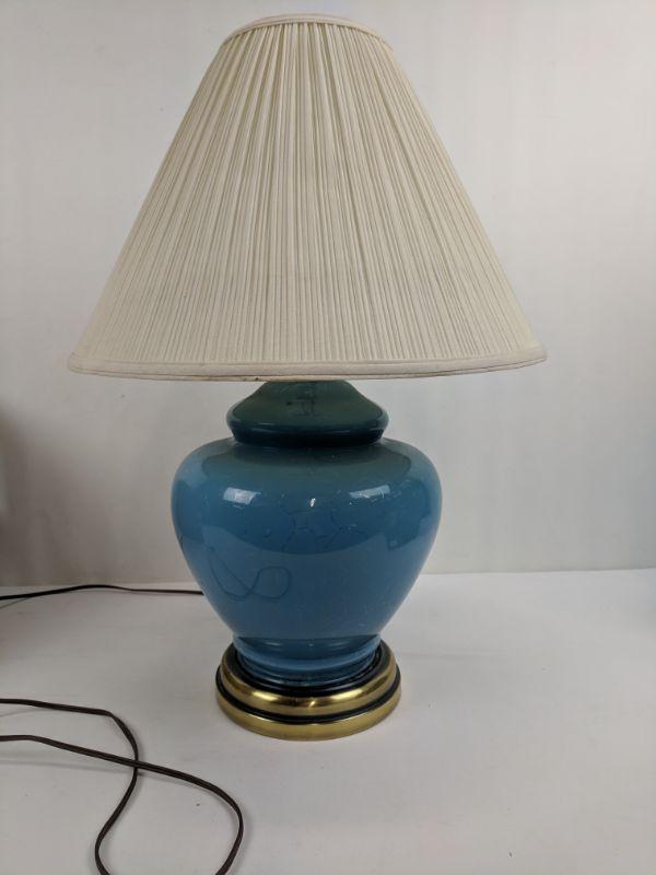 Blue Glass Lamp, Gold Base, Ivory Lamp Shade