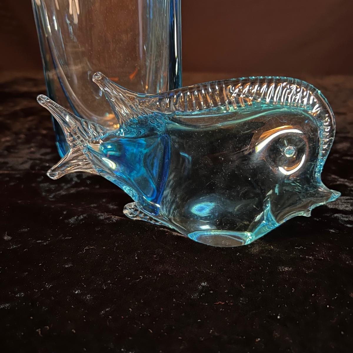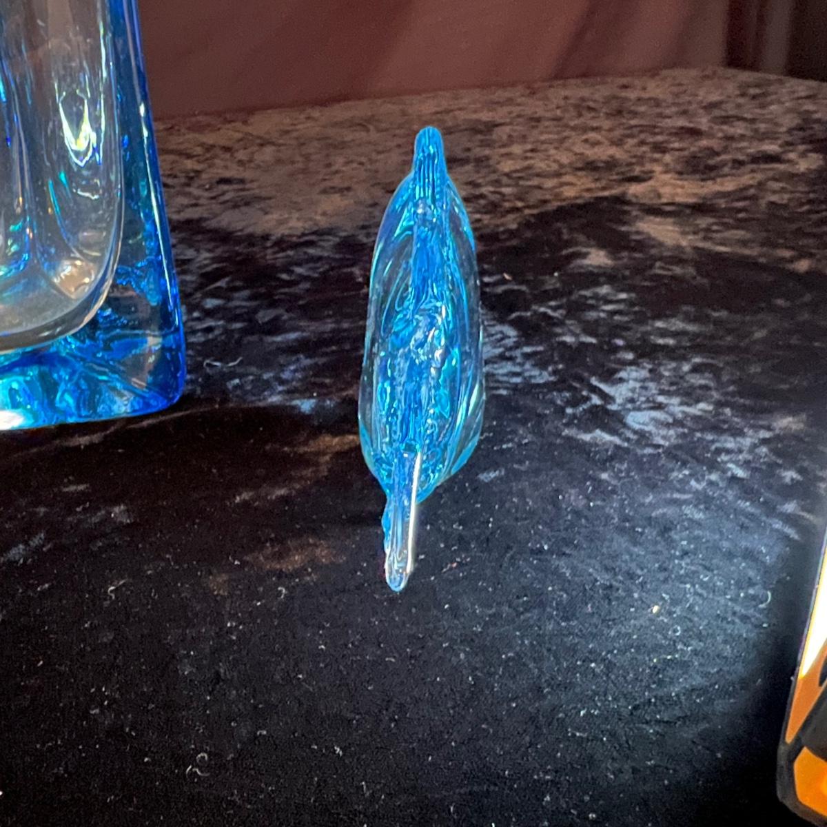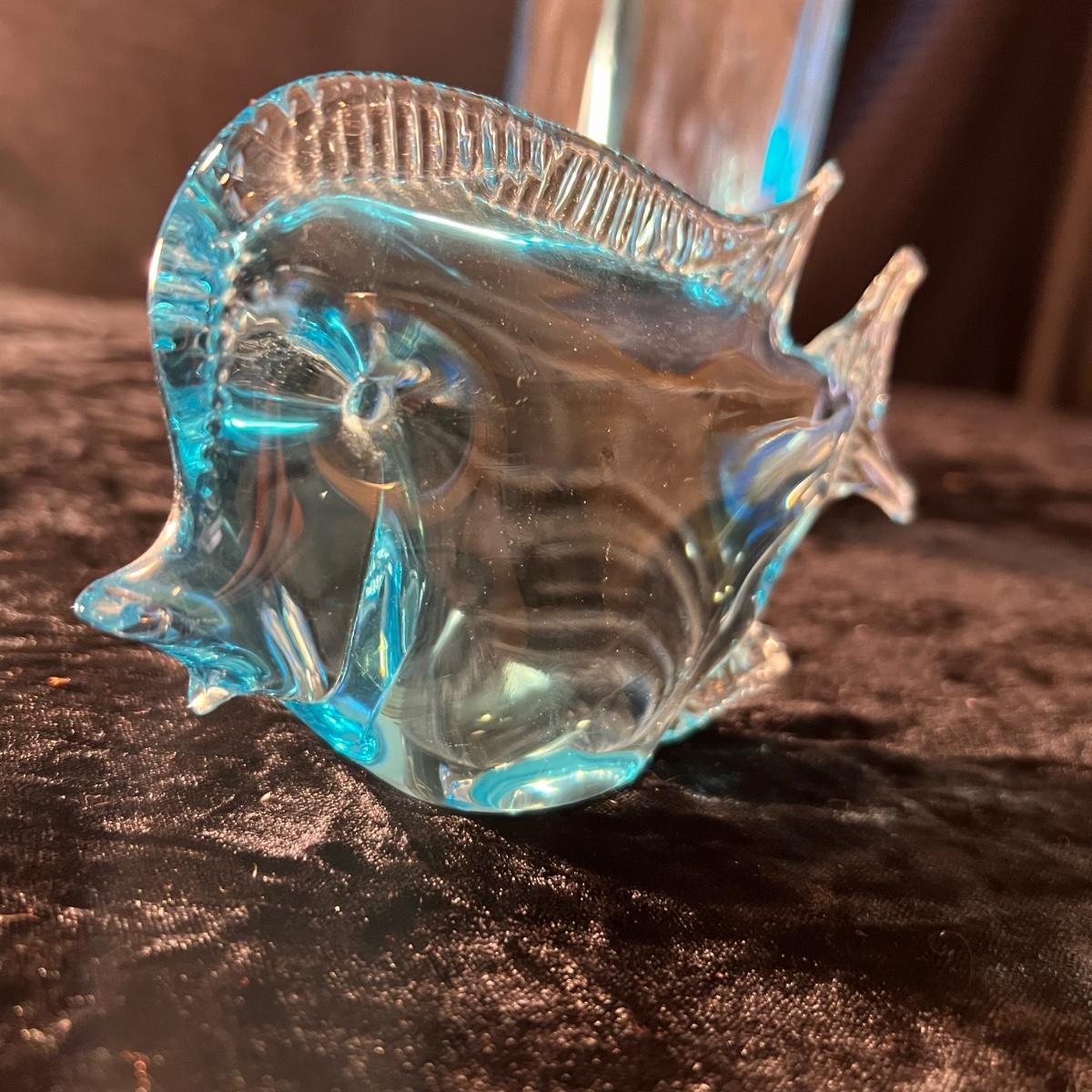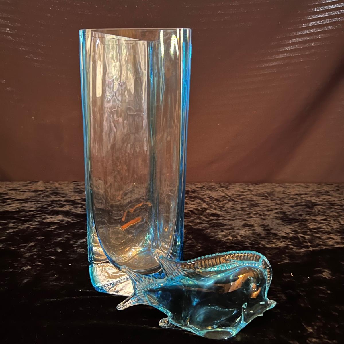 Blue Glass Murano Style Glass Fish Figurine Plus a Vase (D-RG)