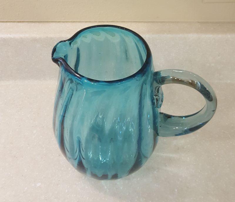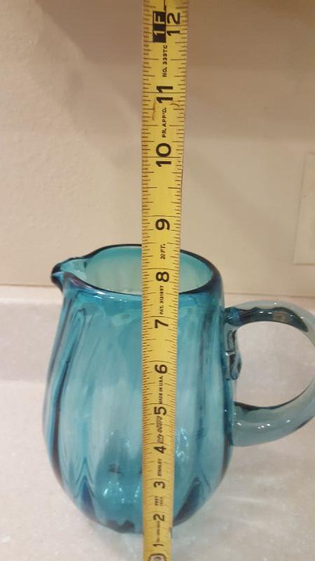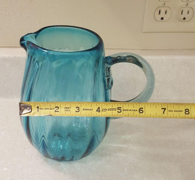 Vintage, Twisted Blue Glass Pitcher 46OZ in Great Condition. No Chips or Cracks 6.5" x 7.5"