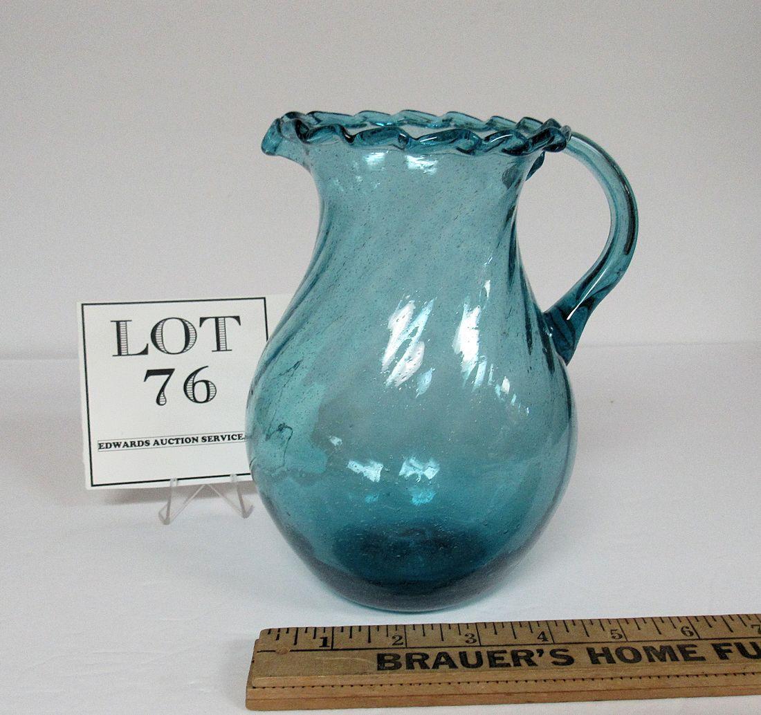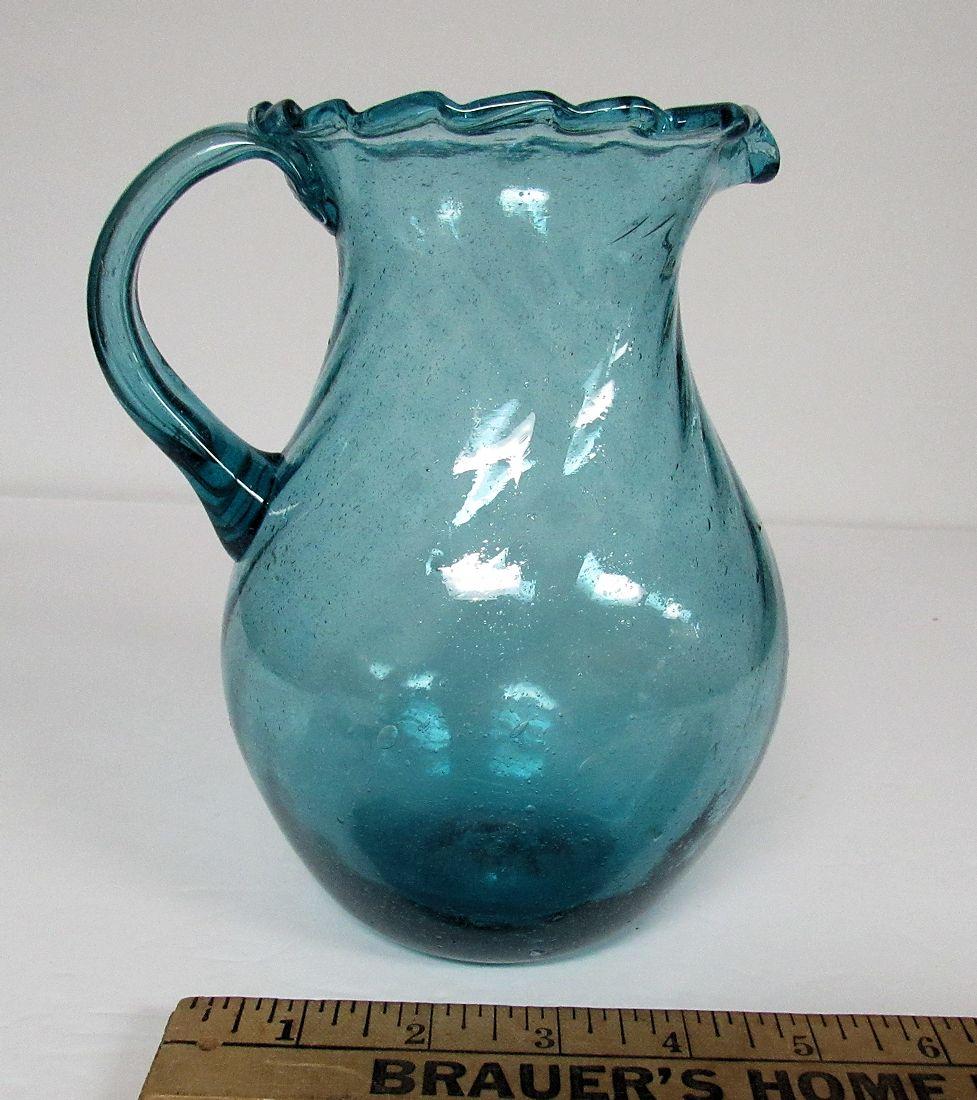 Blue Glass Pitcher With All Over Bubbles and Nice Pontil on Bottom