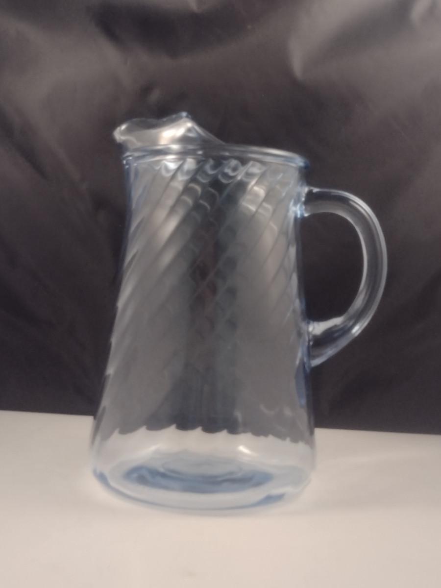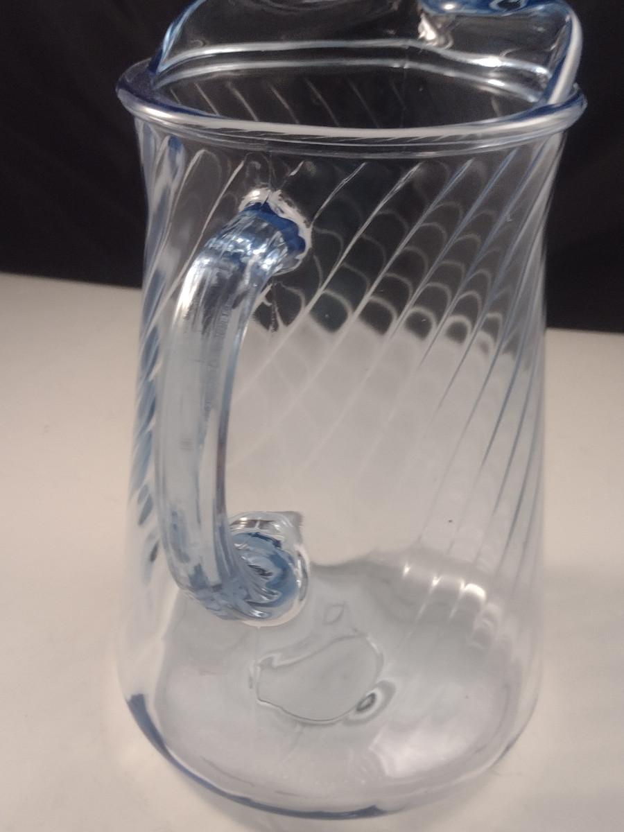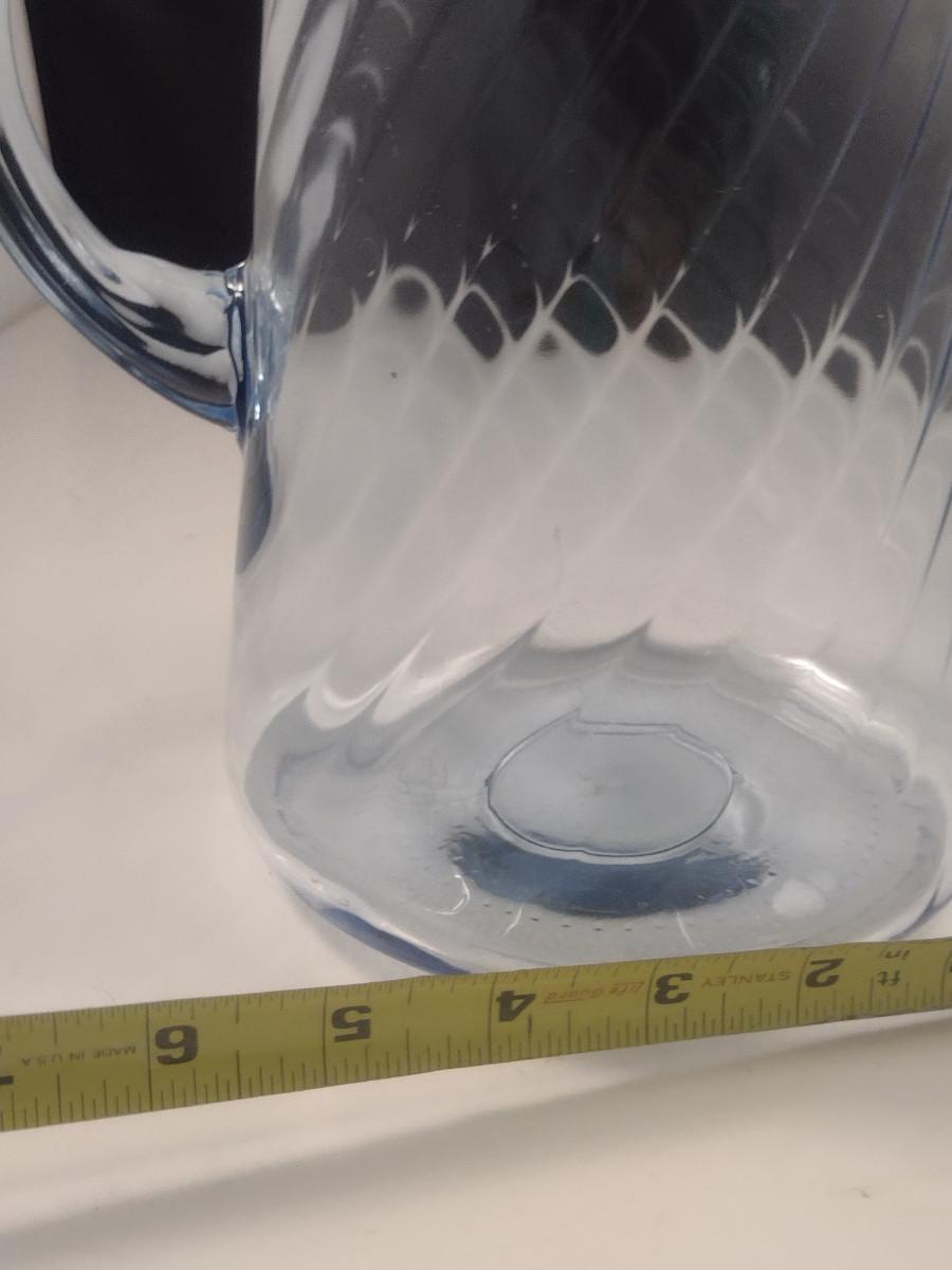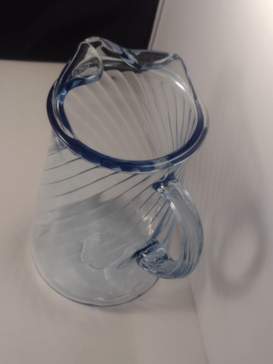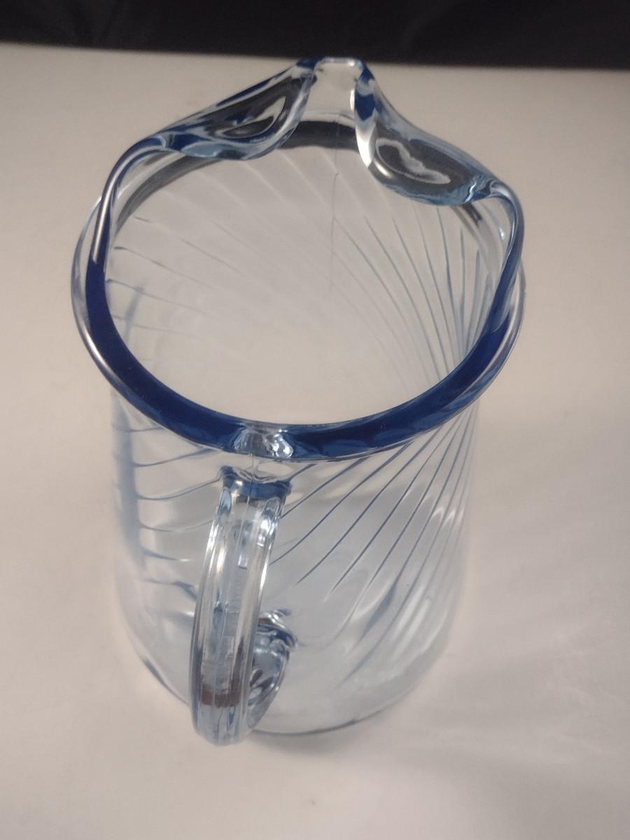 Blue Glass Pitcher with Swirl Pattern and Ice Lip