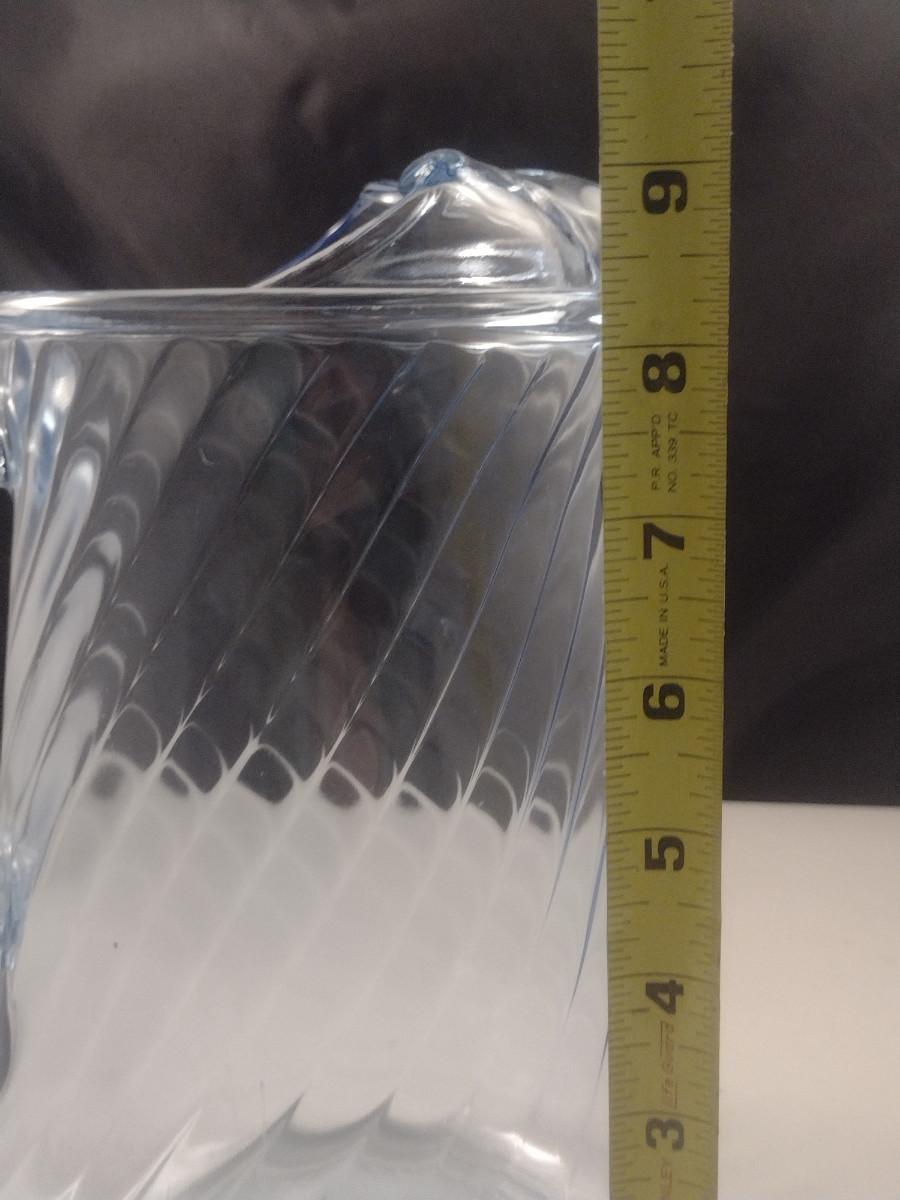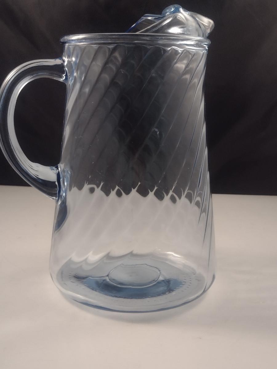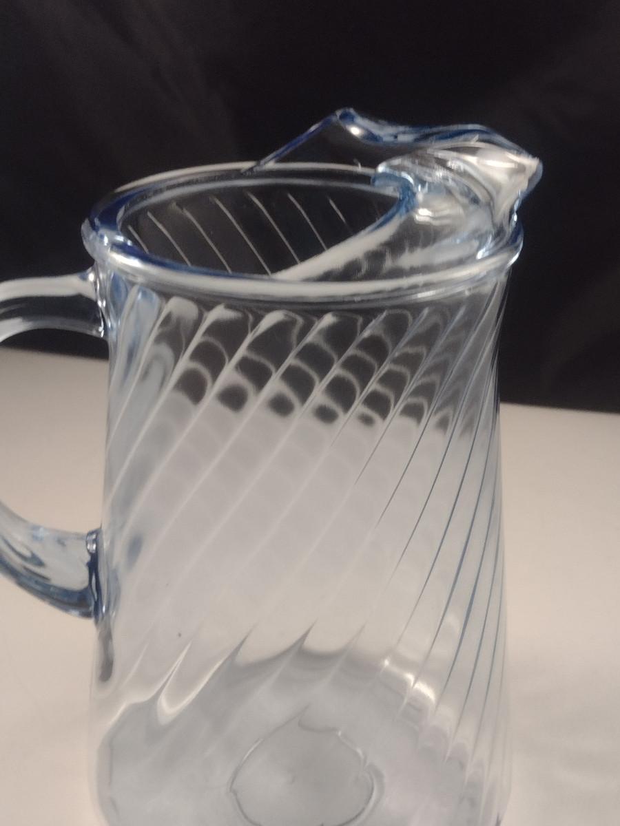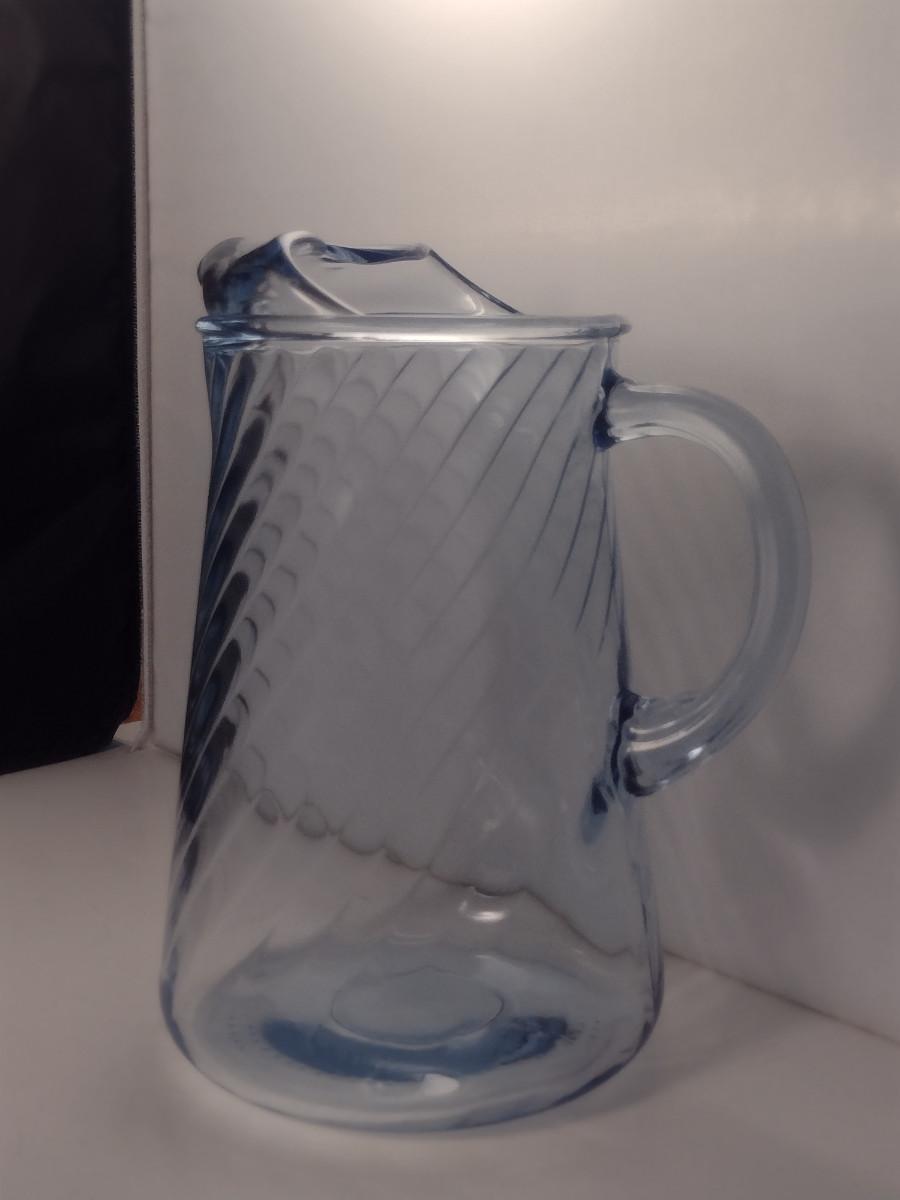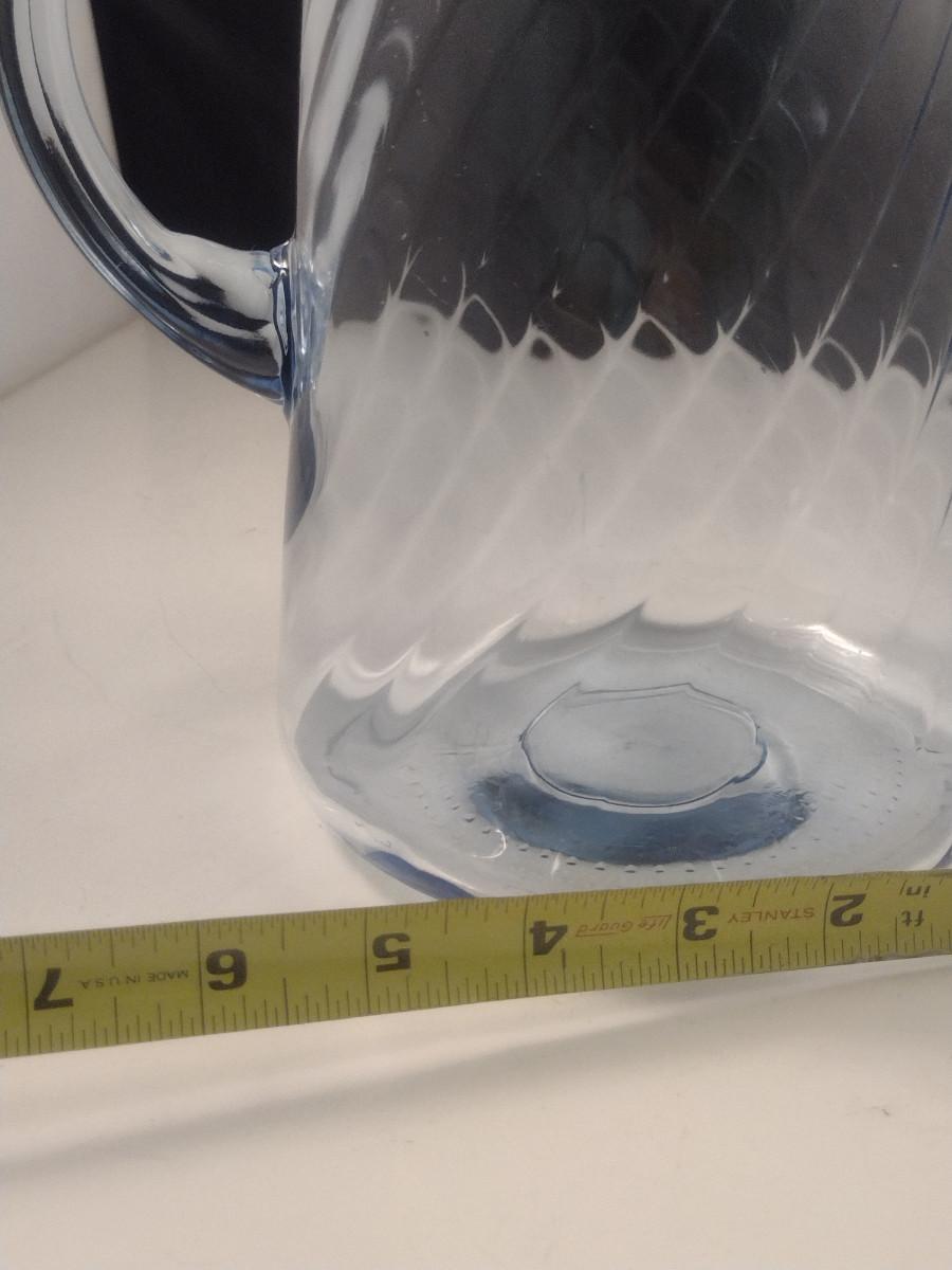 Blue Glass Pitcher with Swirl Pattern and Ice Lip
