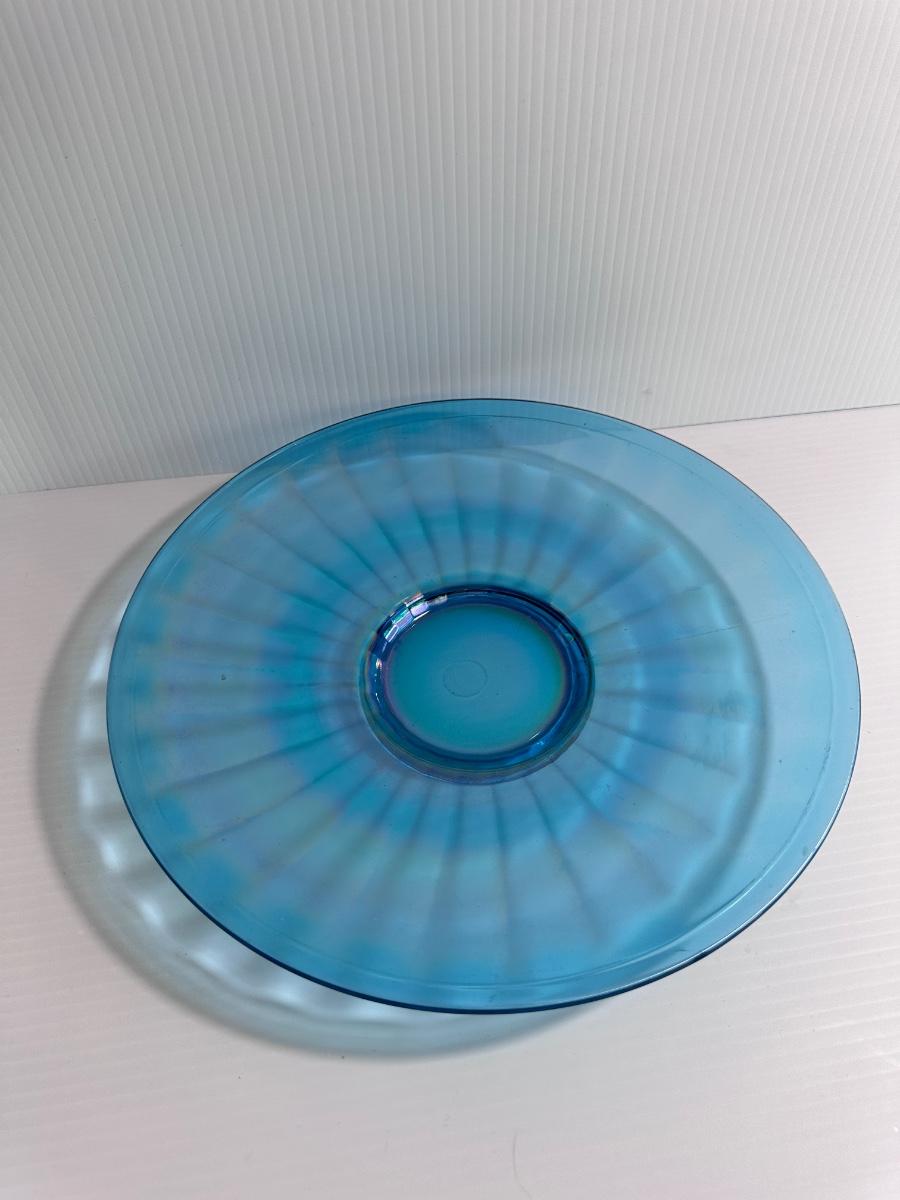 IMPERIAL CELESTE BLUE IRIDESCENT GLASS PLATTER