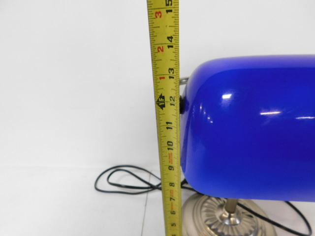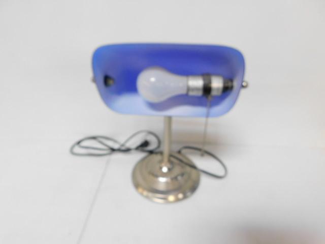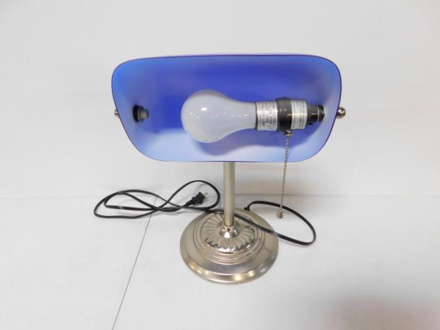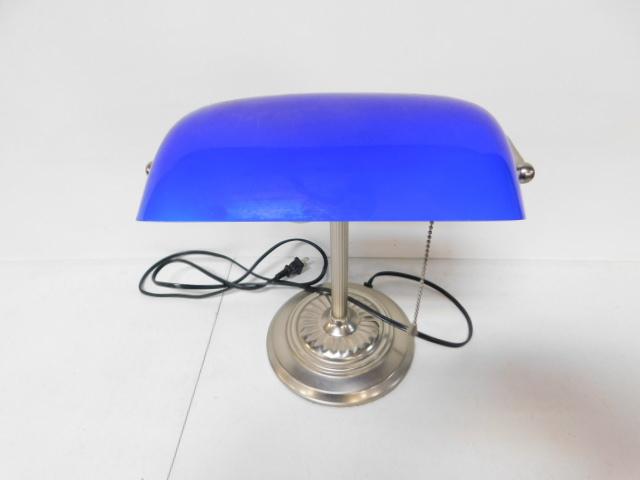 Blue Glass Shade Nickel Finish Desk Lamp