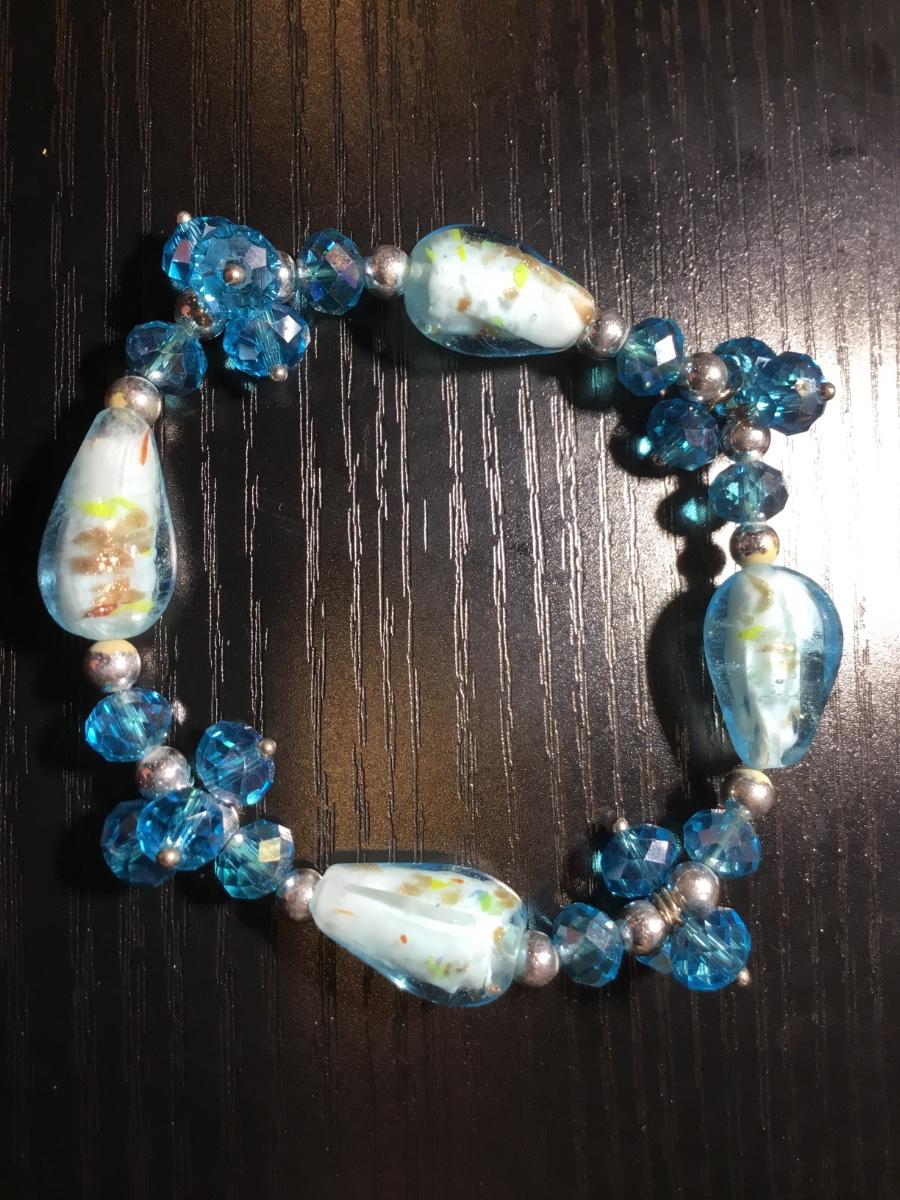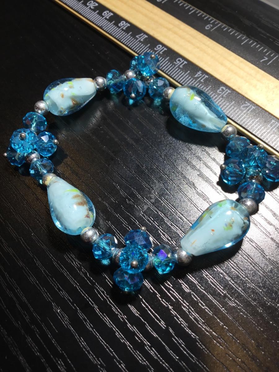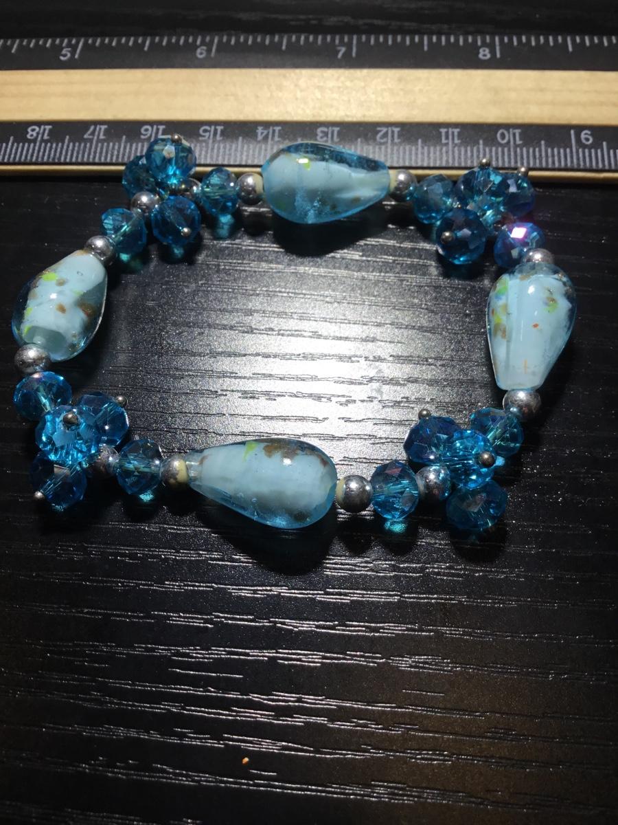 Blue glass type beaded stretchy bracelet