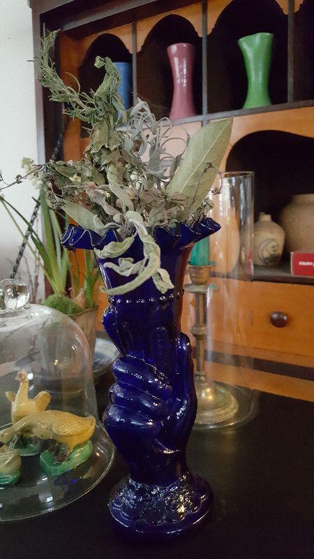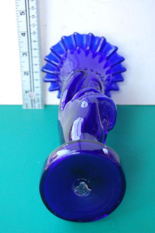 This lot is for a wonderful, hand-blown and crafted Vintage Fenton Glass Hand Vase in rare Cobalt Blue. The Fenton Art Glass Company - founded in 1905, is located in West Virginia. The vase measures about 9-inches tall and 4.5-inches wide at the top. This vintage vase is approximately 50-60 years old and in very good condition for its age. There is a miniscule rough spot at the outer ridge of one of the top flutes...too tiny to show up in a photo and barely able to be felt. Fenton Art Glass Co. ceased traditional glassmaking in 2011. The factory site was demolished to make way for construction of a new elementary school. The original Fenton Gift Shop moved to a new location in July, 2017. Vintage Fenton Art Glass and new Limited Edition glass (made at Mosser Glass using the Fenton moulds) is exclusively at that Gift shop. Dried herbs being held in vase on desk are for display and not part of the auction, nor any items on the desk. This terrific item was donated to the auction by IHA Board Member Pat Kenney.