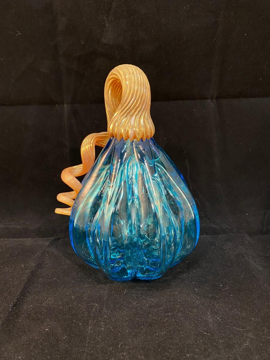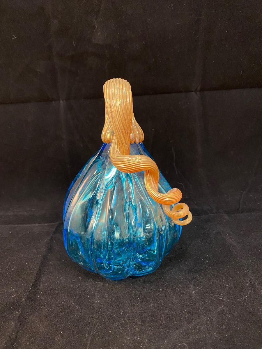 Paperweight Figurine Blue & Gold Blown Art Glass Pumpkin Gourd