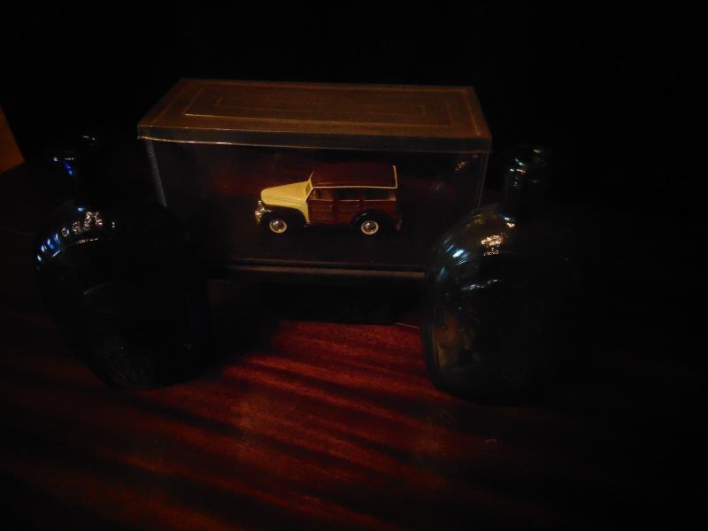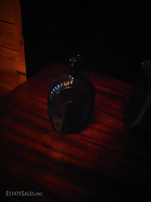 Blue Bottle with George Washington , Blue Bottle and Collectible Car in Plastic Display Box