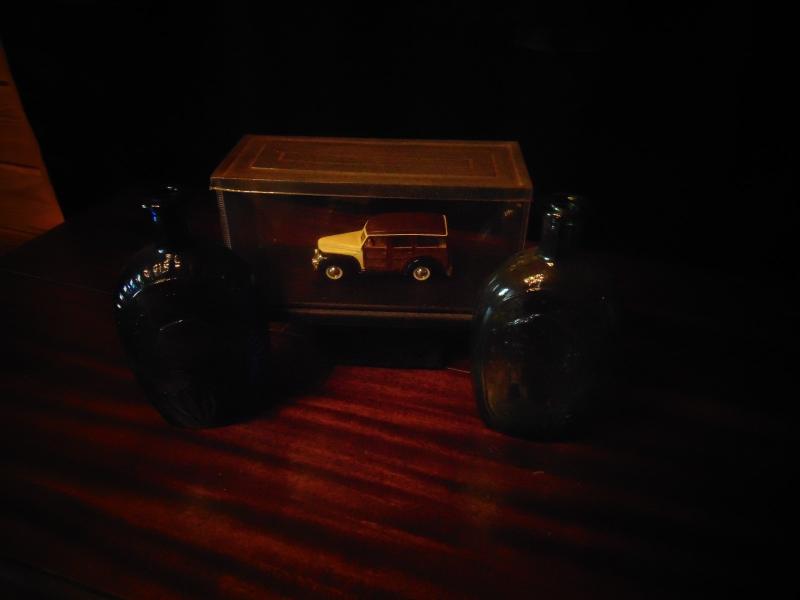 Blue & Green Bottles and Collectible Car