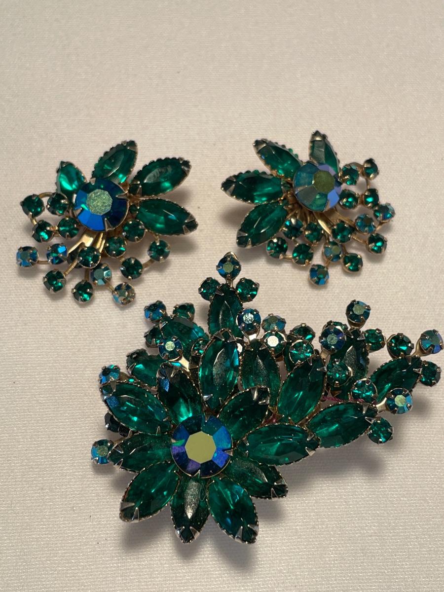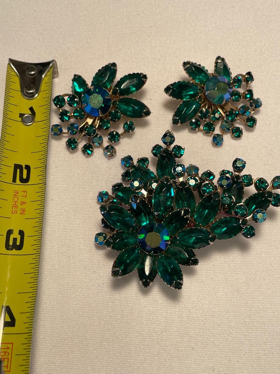 Blue Green clip ons & brooch