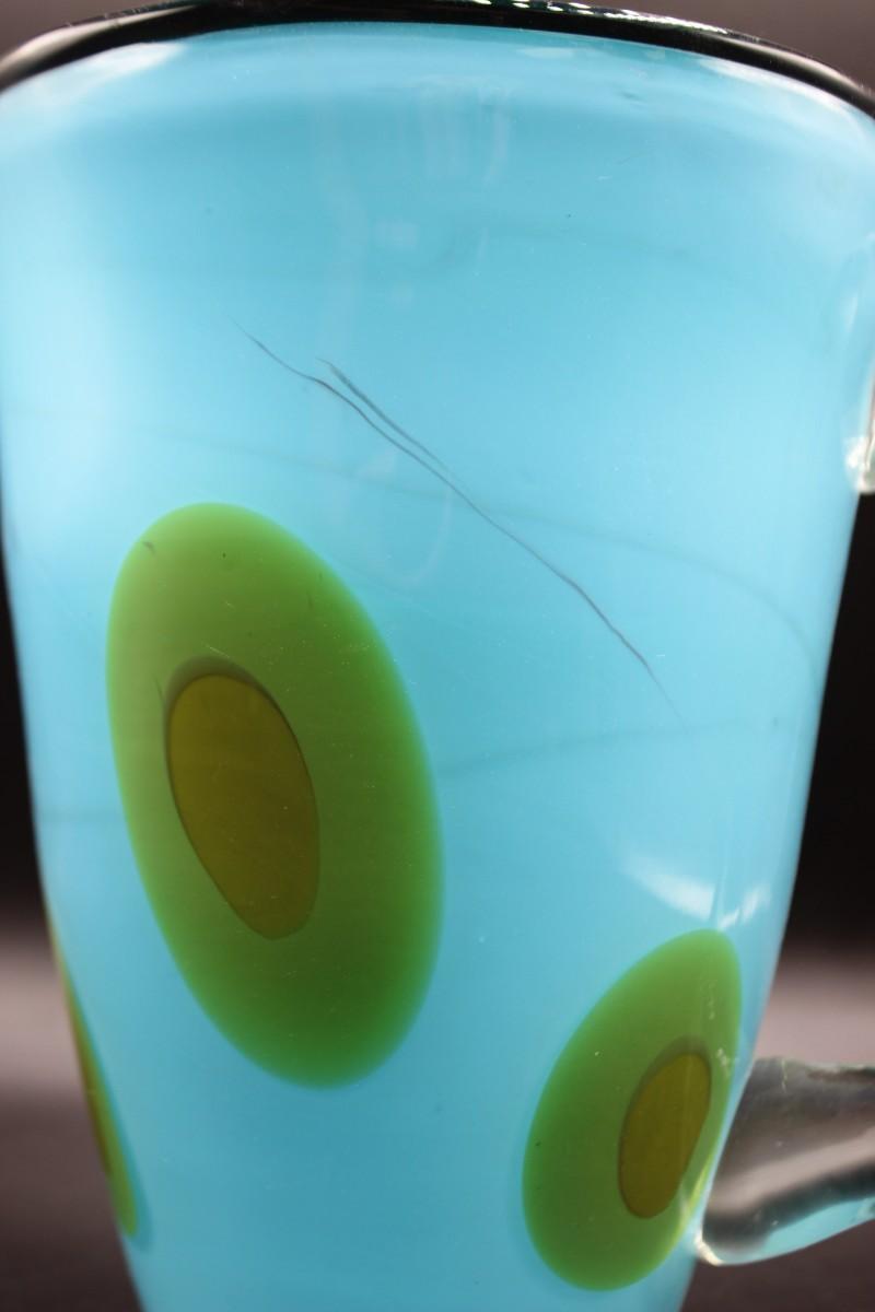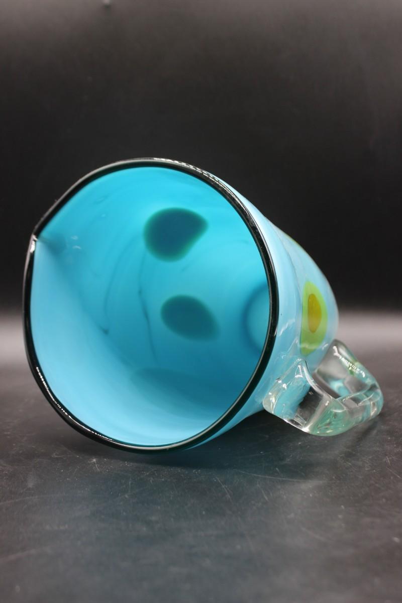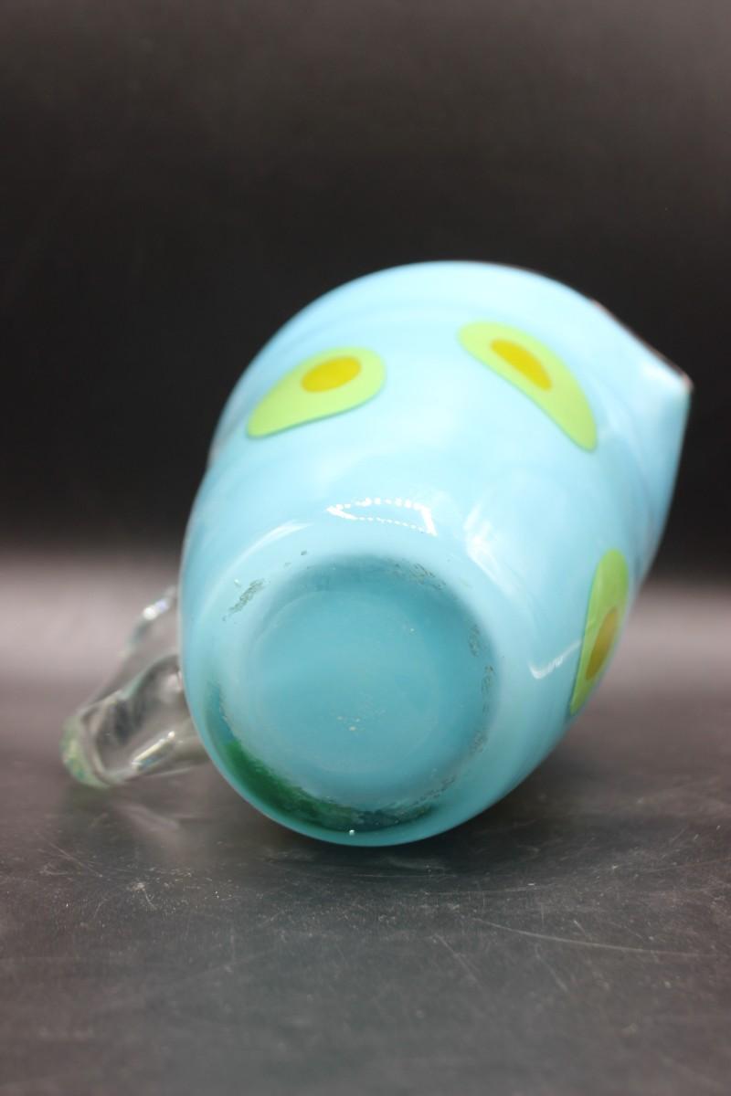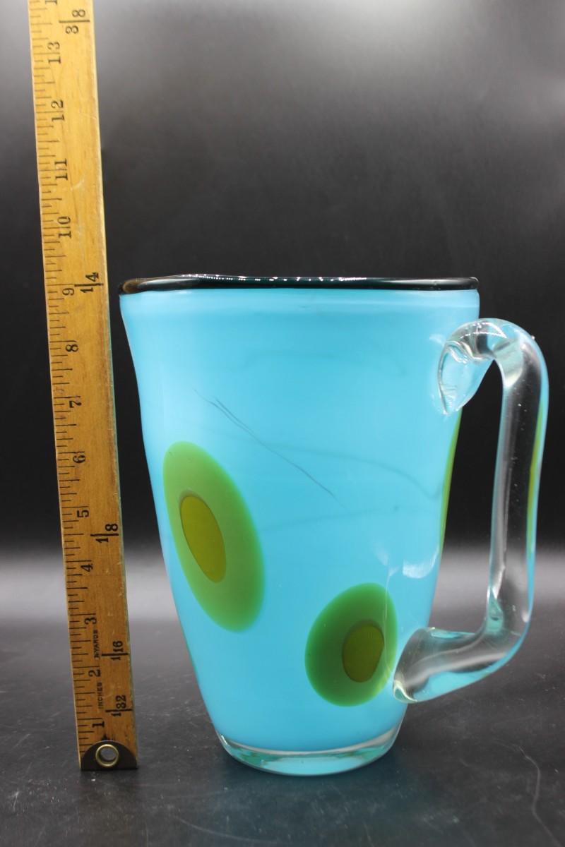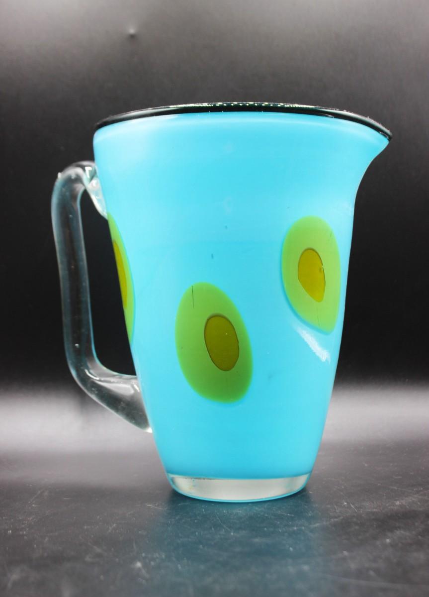 Blue Green Peacock Eye Murano Style Art Glass Water Iced Tea Pitcher